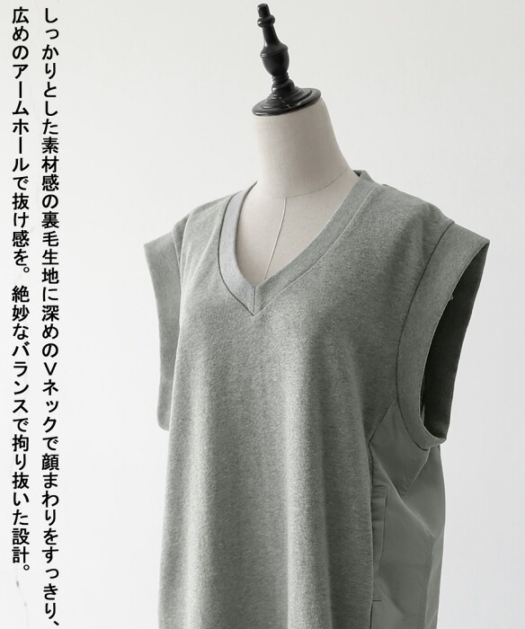 【検索ワード】裏毛ワンピース ワンピース レディース ロング ノースリーブ ベスト 無地 裏毛 切り替え シャカシャカ 異素材 ドッキング Vネック 重ね着 レイヤード ベストワンピース きれいめ 高級感 シンプル 上品 スポーティー ロングワンピース ロングワンピ ワンピ 綿 コットン ゆったり プルオーバー スリット バックスリット 大きいサイズ ポケット付き スウェットワンピ スウェット リラックス感 ラフ antiqua アンティカ 大人 おしゃれ 10代 20代 30代 40代 50代 60代 春 夏 秋 冬 オールシーズン お洒落 カジュアル かわいい かっこいい あんてぃか