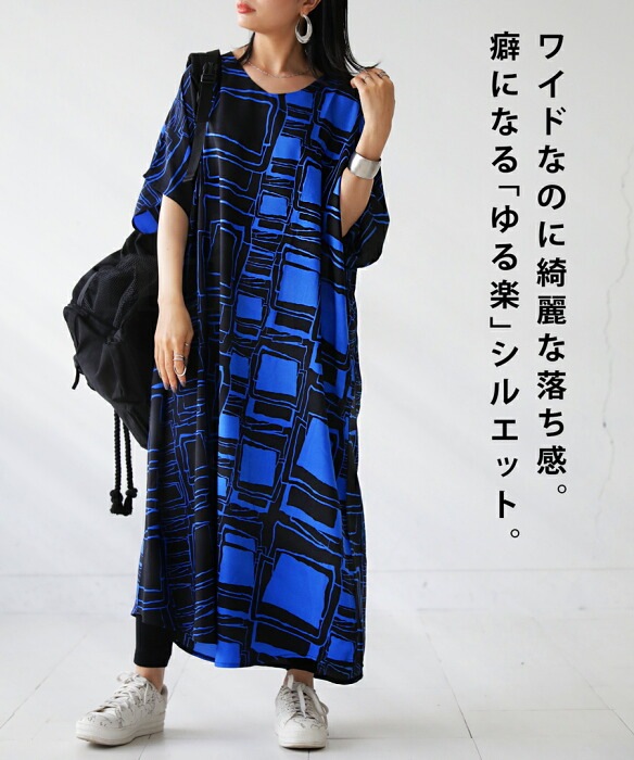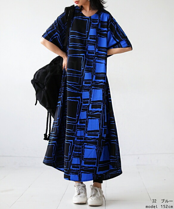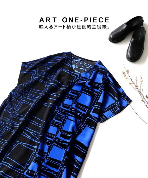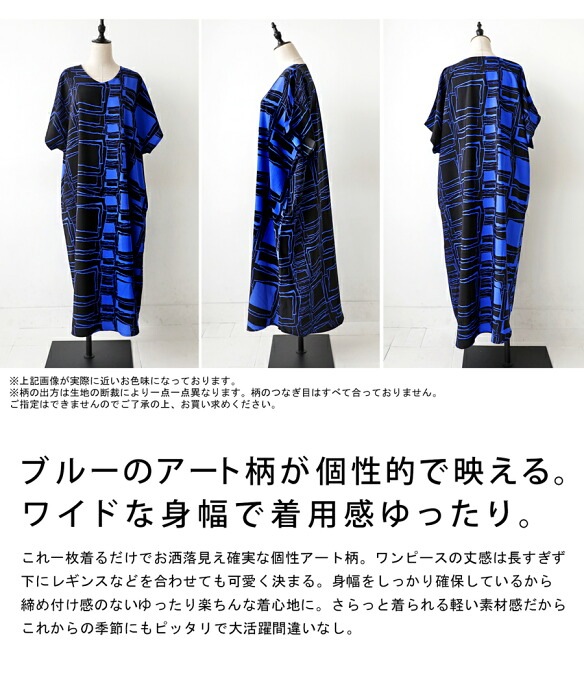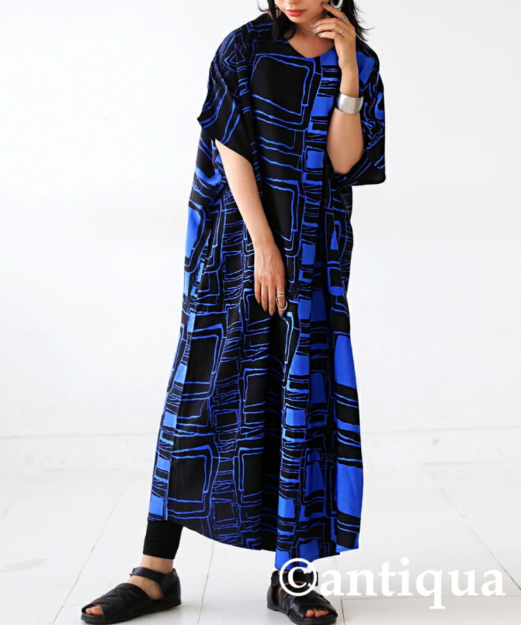 【検索ワード】ワンピース レディース 半袖 ロング アート柄 柄ワンピ 柄 アート Vネック ゆったり シンプル きれいめ 上品 高級感 ポケット付き ロングワンピース ロングワンピ ワンピ ラウンド裾 ワイド 着痩せ 二の腕カバー 体型カバー 大きめ 大きいサイズ ニュアンス柄 シワになりにくい リラクシー ラフ ゆる楽 青 ブルー 落ち感antiqua アンティカ 大人 おしゃれ 10代 20代 30代 40代 50代 60代 春 夏 お洒落 カジュアル かわいい かっこいい あんてぃか