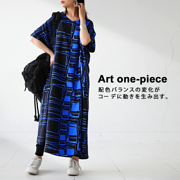 ワンピース レディース 半袖 ロング アート柄 送料無料・(80)メール便可