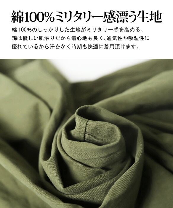 ・綿100%のしっかりした生地がミリタリー感を高める。