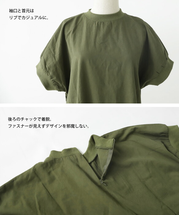 首元と袖口はリブでカジュアルダウンして、甘いワンピに抵抗がある方にこそ着てほしい一枚です。