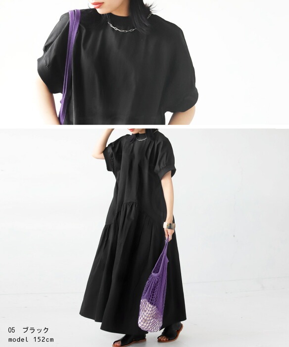 ウエストアシメの大人カジュアルワンピ。