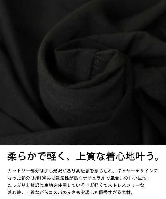 ・ギャザーデザインになった部分は綿100%で通気性◎