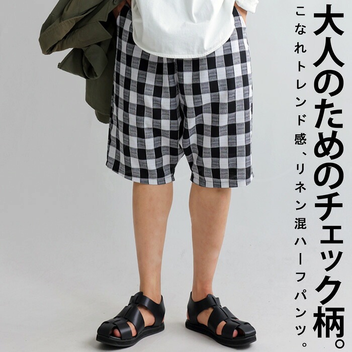 【検索ワード】ハーフパンツ パンツ メンズ ボトムス ひざ丈 チェック柄 柄パンツ 柄 セットアップ 総柄 半パン 短パン ショートパンツ ショート丈 ナチュラル シンプル リネン混 ゆったり ポケット付き 前フラット 後ろゴム ユニセックス 男性 男 かっこいい カッコイイ カジュアル antiqua treecafe アンティカ ツリーカフェ メンズファッション トレンド コーディネート 通販 ブランド 春 夏 あんてぃか
