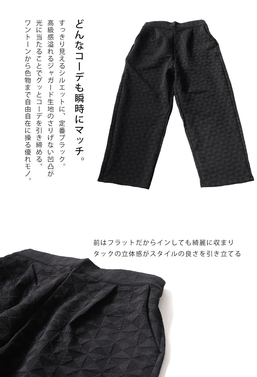 ・美脚つくる立体タックデザイン。