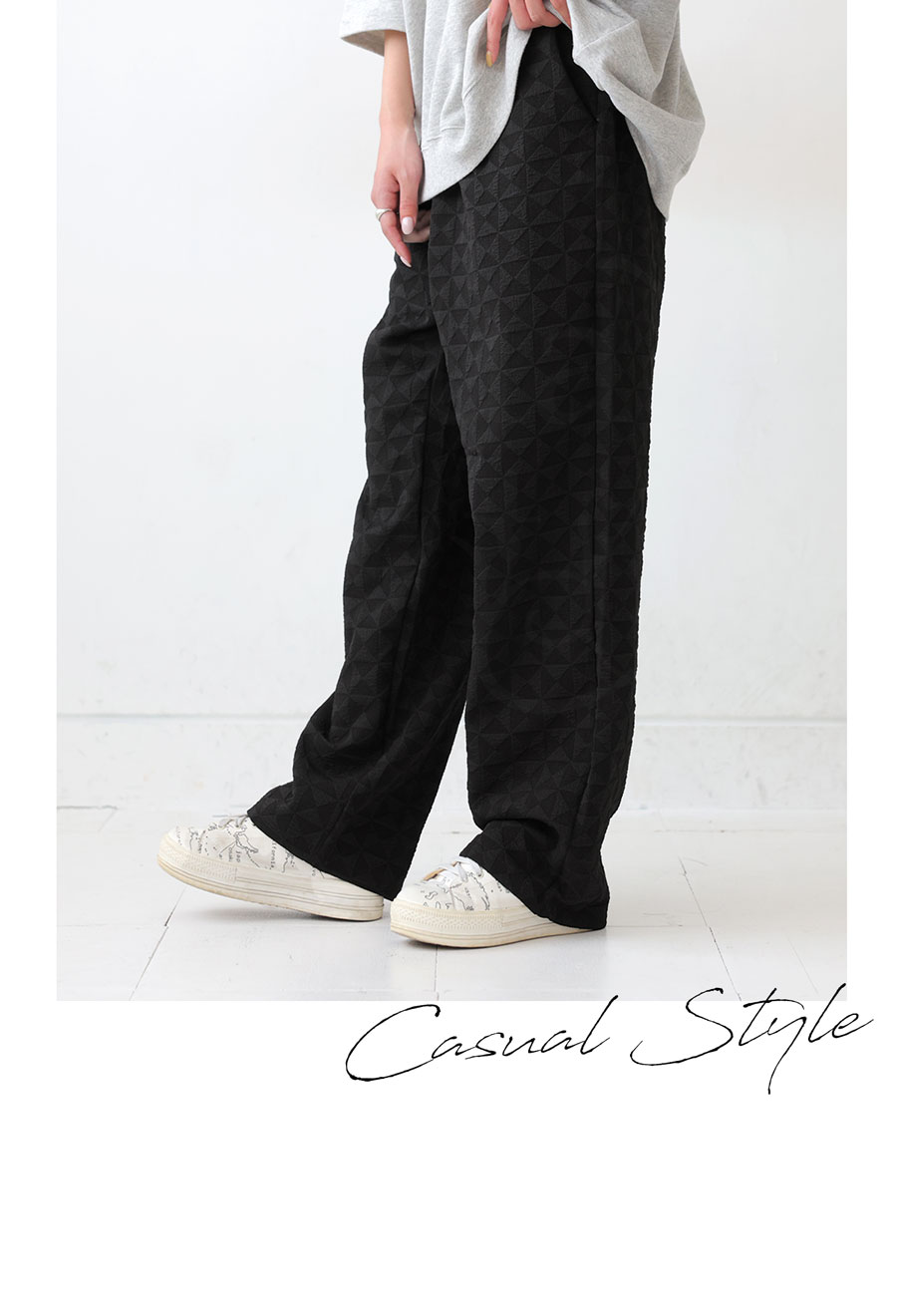 コーデを彩る『幾何学模様パンツ』
