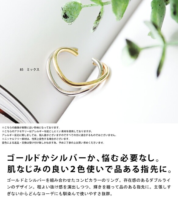 【検索ワード】リング 指輪 レディース コンビカラー 上品 アレルギー対応 ニッケルフリー 金属アレルギー 低アレルギー ファッションリング 輝き ダブルライン シンプル アクセサリー アクセ ジュエリー 普段使い デイリー フォーマル 結婚式 二次会 パーティー オケージョン antiqua アンティカ 大人 おしゃれ 10代 20代 30代 40代 50代 60代 春 夏 秋 冬 オールシーズン お洒落 カジュアル かわいい かっこいい あんてぃか