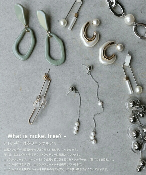 ニッケルフリーとはニッケルという金属などで引き起こるアレルギーを「防ぐことを目的」にニッケルをほぼ含まずにニッケルフリーメッキを使用しているもの。