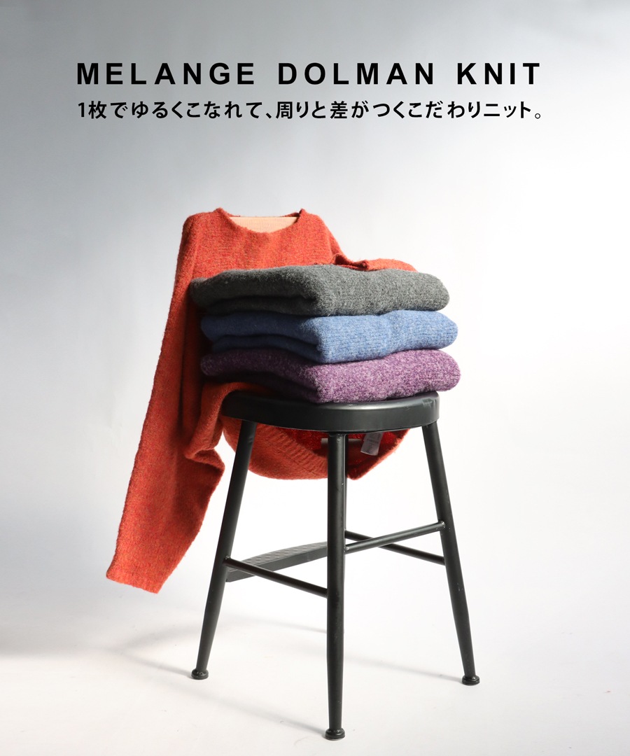 軽やかな着心地叶う『ドルマンメランジニット』。