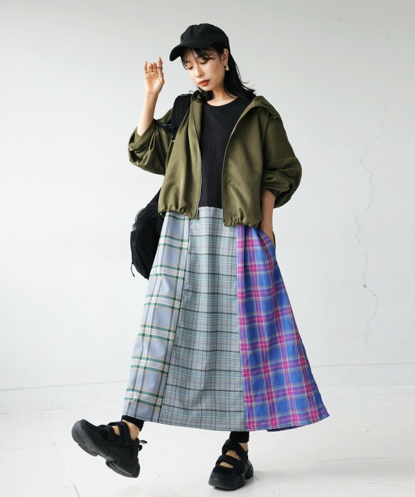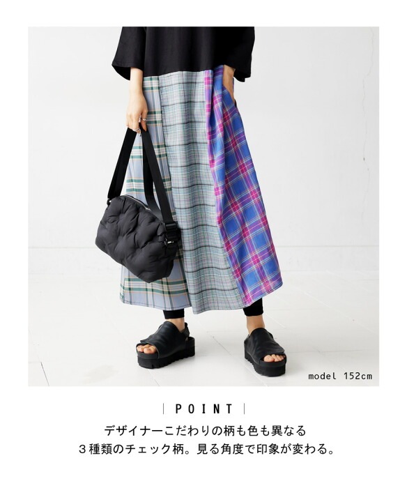 ・下は柄の異なる3種類のチェック生地で色鮮やかに。