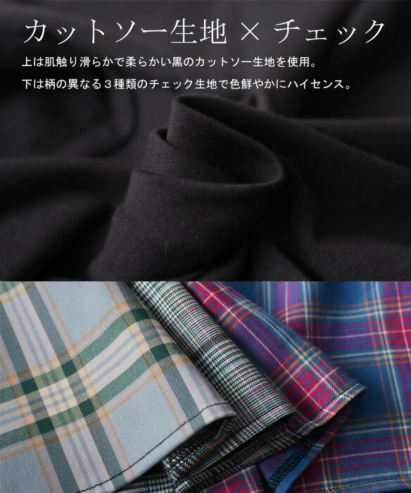 ・カットソー生地×チェック柄。