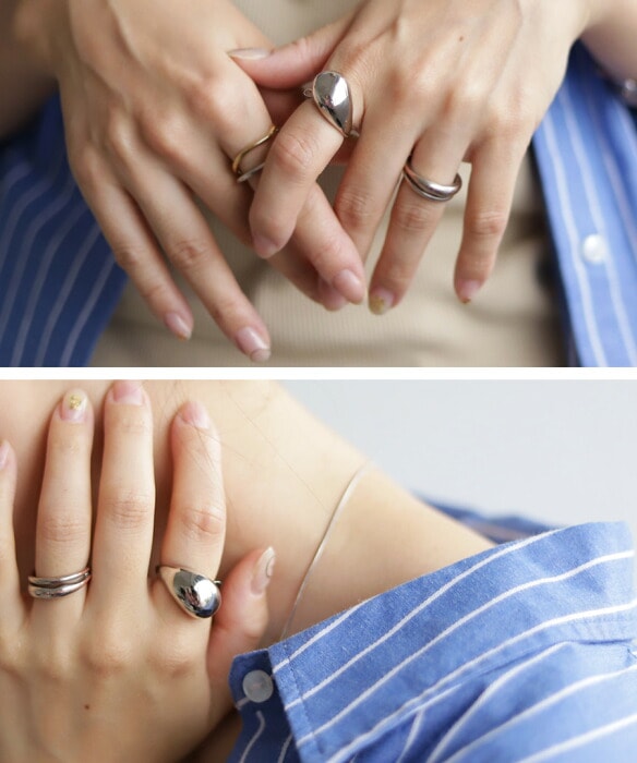フォーマルなコーデからカジュアルなコーデまで幅広く合わせられる万能リングです。