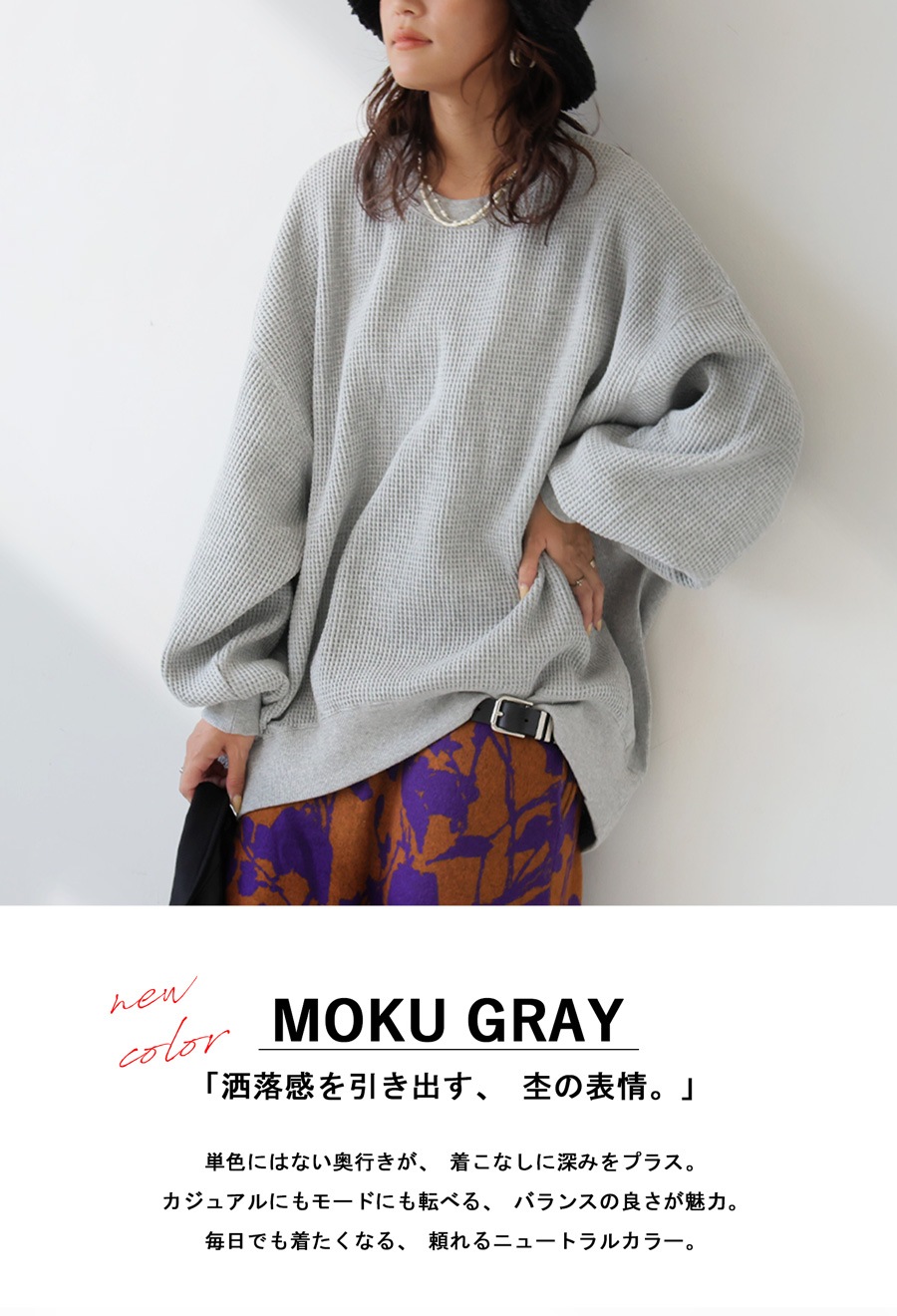 どのカラーも日常に取り入れやすく、こなれた大人のカジュアルスタイルを叶える1枚です。