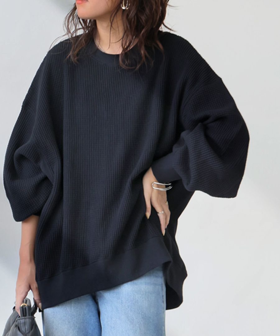 肩まわりはドルマンスリーブのようにゆとりがあり、動きやすく抜け感のある印象に。