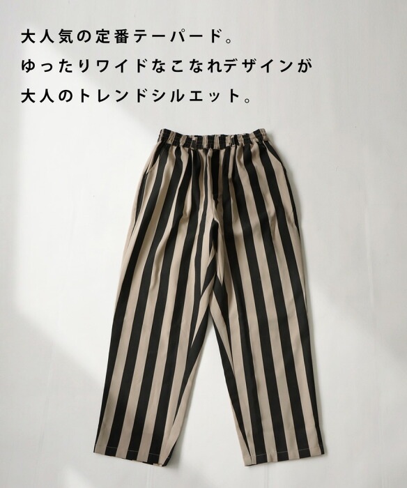 【検索ワード】テーパードパンツ パンツ レディース ボトムス ロング ストライプ柄 柄 柄パンツ シンプル テーパード スラックス 長ズボン ワイド ゆったり ウエストゴム 高級感 美脚 上品 細見え 脚長効果 レーヨン混 ポケット付き ユニセックス antiqua treecafe アンティカ ツリーカフェ 大人 おしゃれ 10代 20代 30代 40代 50代 60代 春 夏 秋 冬 オールシーズン お洒落 カジュアル かわいい かっこいい あんてぃか