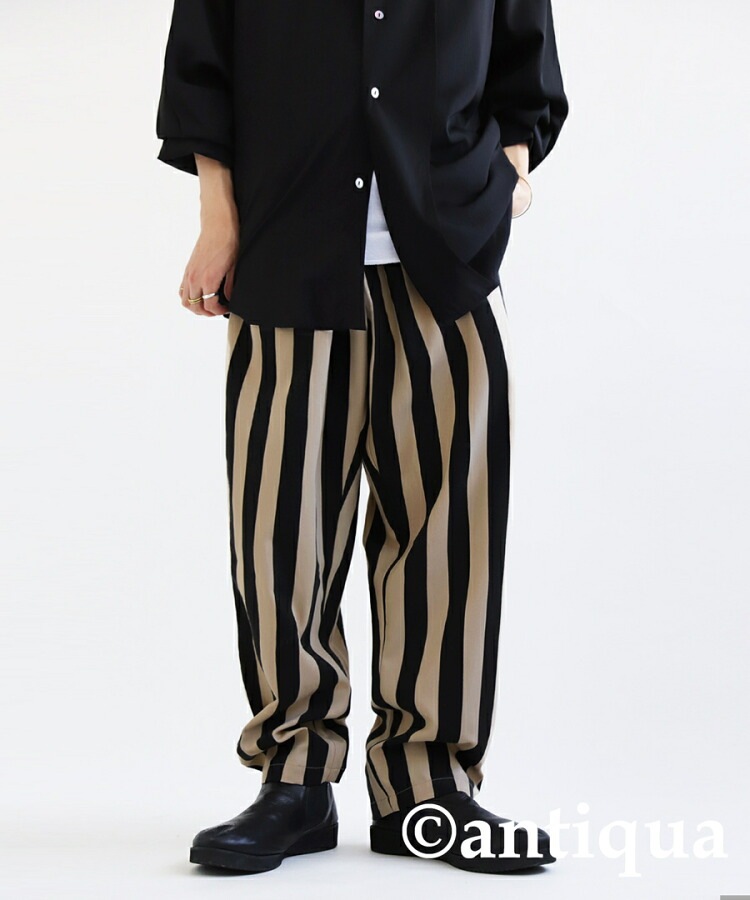 【検索ワード】テーパードパンツ パンツ メンズ ボトムス ロング ストライプ柄 柄 柄パンツ シンプル テーパード スラックス 長ズボン ワイド ゆったり ウエストゴム 高級感 美脚 上品 細見え 脚長効果 レーヨン混 ポケット付き ユニセックス 男性 男 かっこいい カッコイイ カジュアル antiqua treecafe アンティカ ツリーカフェ メンズファッション トレンド コーディネート 通販 ブランド 春 夏 秋 冬 オールシーズン あんてぃか