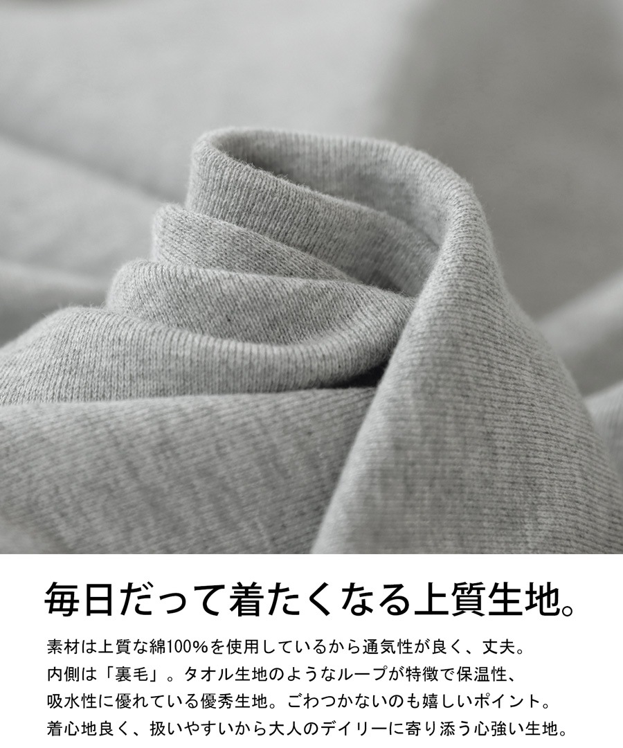 ・内側は裏毛で保温性、吸水性にも優れた優秀素材。