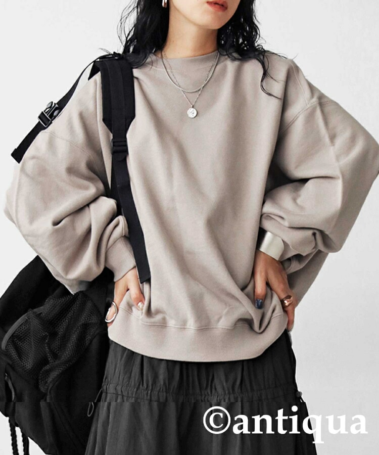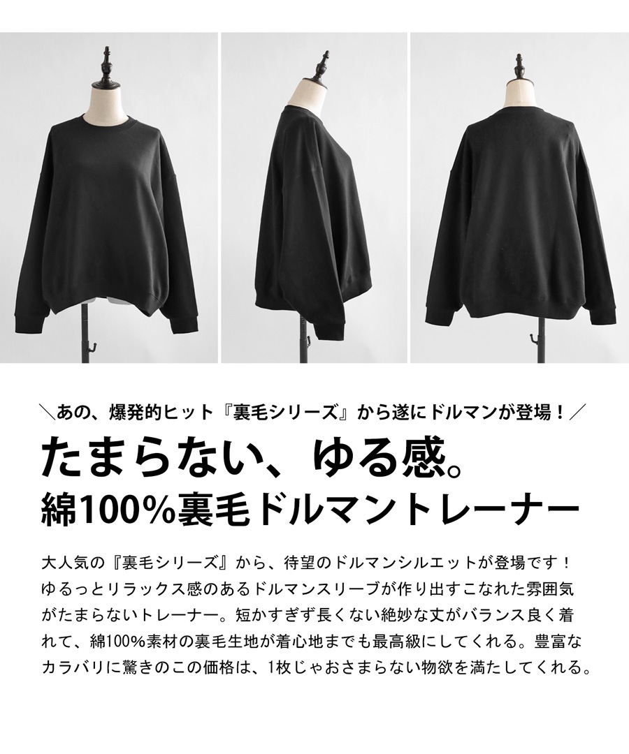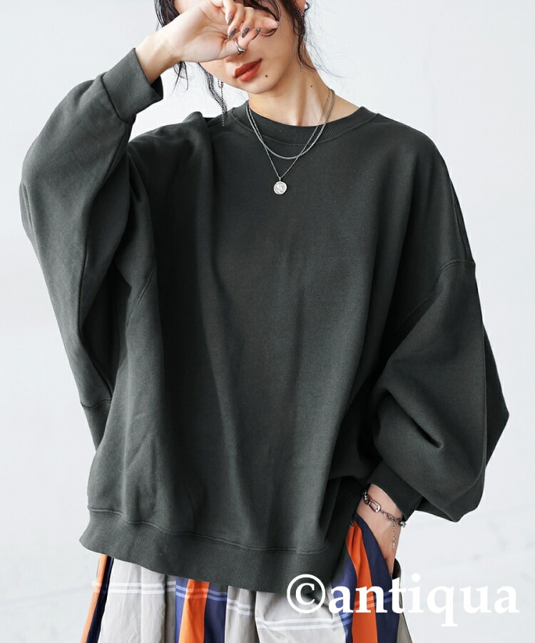 【検索ワード】裏毛プルオーバー トレーナー レディース トップス 綿100 ショート丈 ドルマン ドルマントップス スウェット 無地 シンプル 長袖 クルーネック 丸首 前後差 ドロップショルダー ゆったり ラフ 裏毛 裏毛トップス ボリューム袖 きれいめ 綿 コットン 着痩せ 細見え レイヤード 重ね着 antiqua アンティカ 大人 おしゃれ 10代 20代 30代 40代 50代 60代 春 秋 冬 お洒落 カジュアル かわいい かっこいい あんてぃか