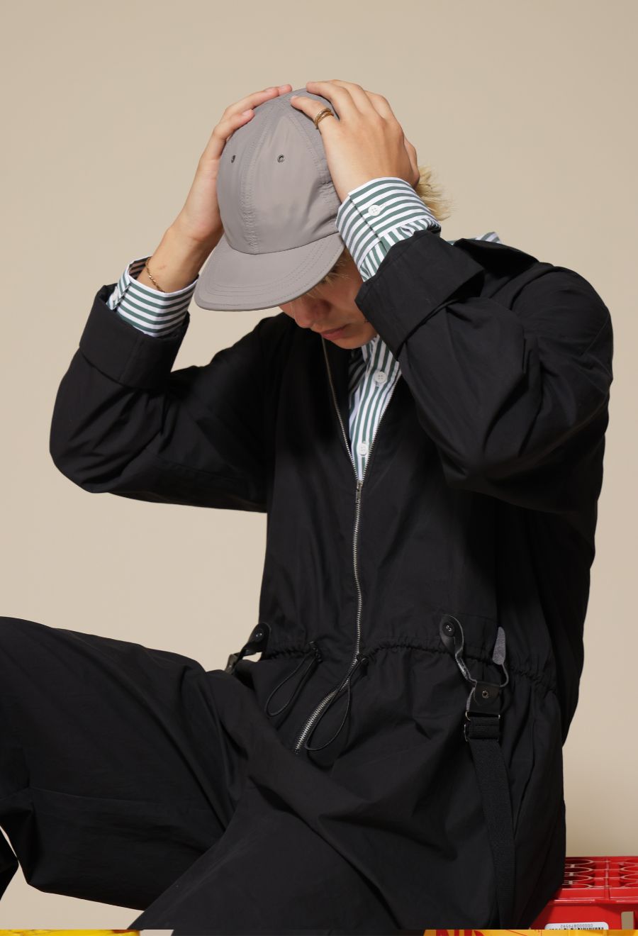 フロントはジップ開きで着脱がスムーズ。袖丈は長袖仕様で、ロールアップしてアレンジも可能です。