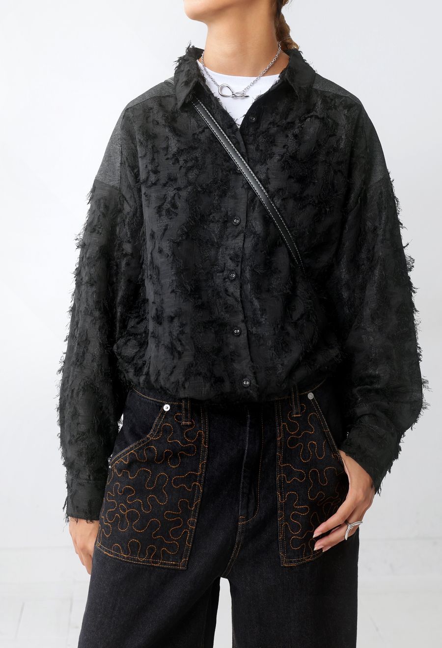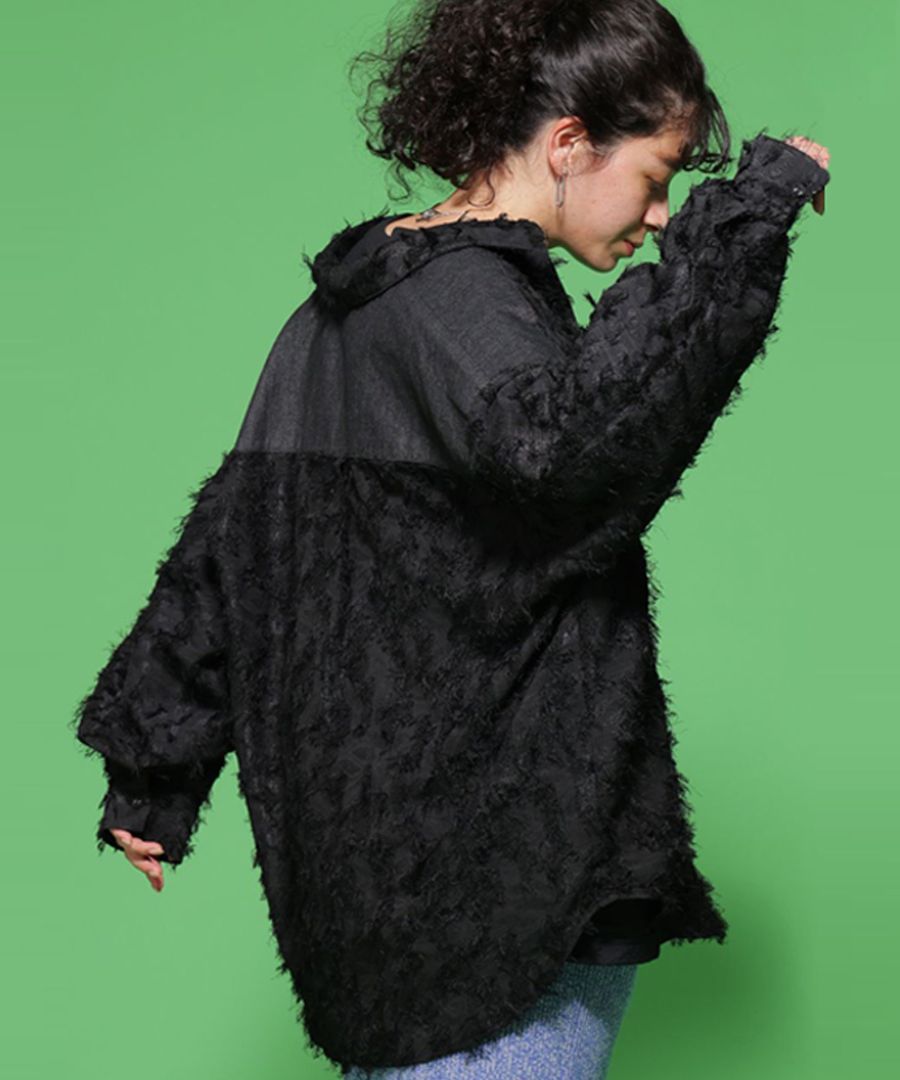 フリンジジャガード デニムシャツ レディース 長袖 送料無料・メール便不可