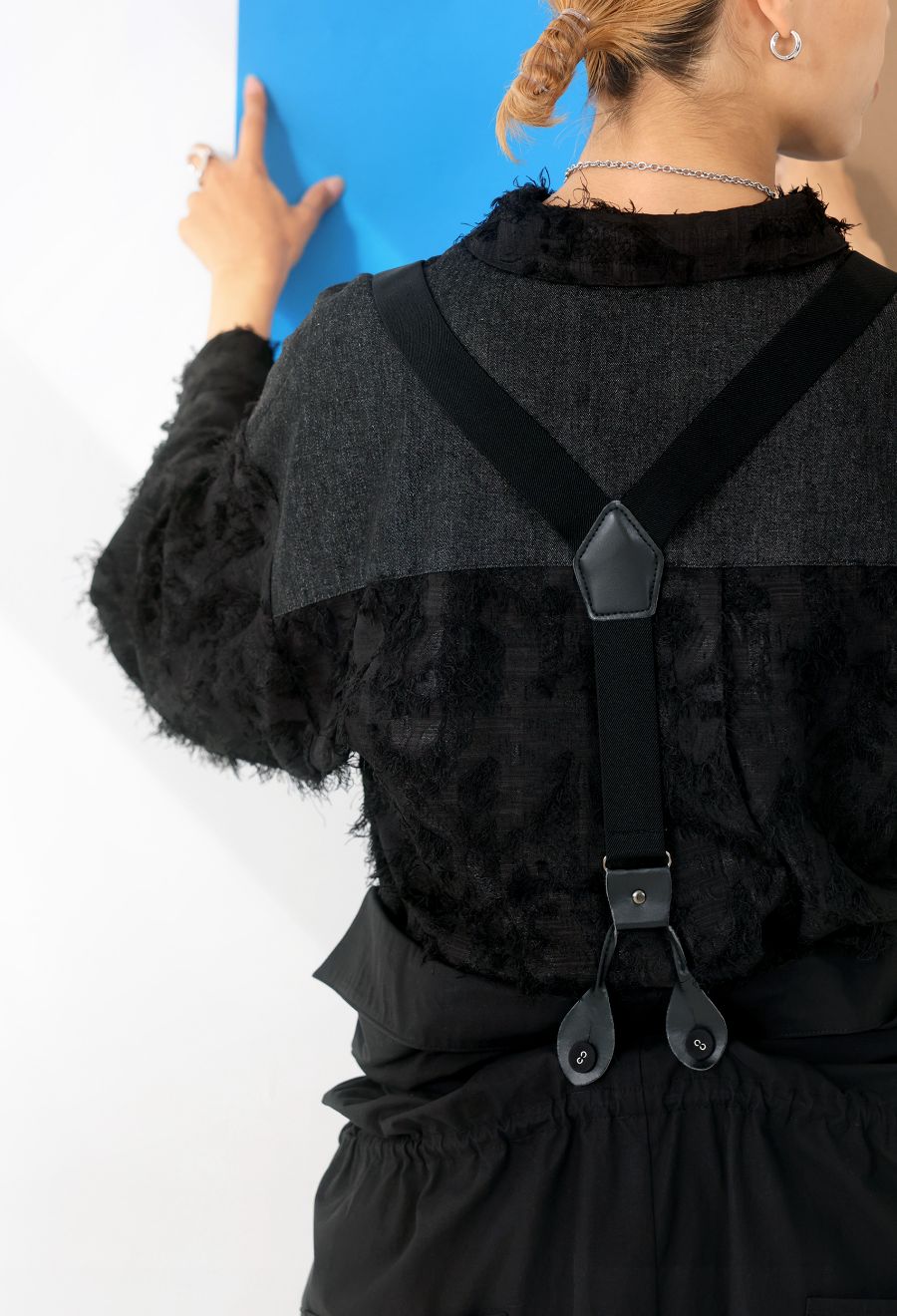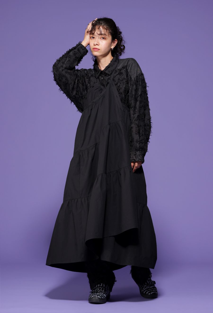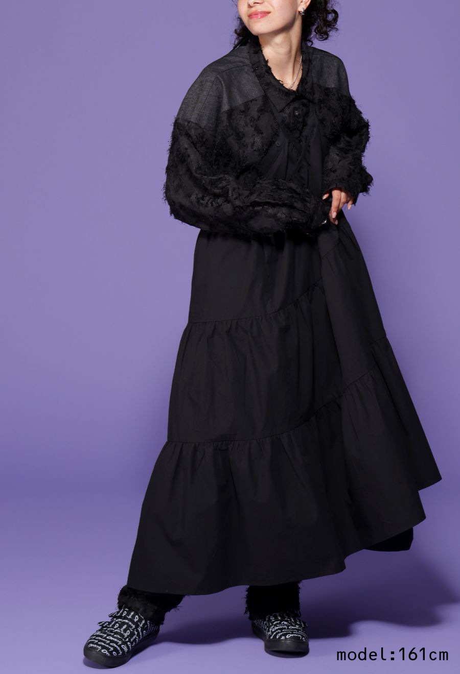 ブラック(黒・くろ・Black)はコーデを引き締めつつ、素材の陰影で単調にならない奥行きのある印象に。