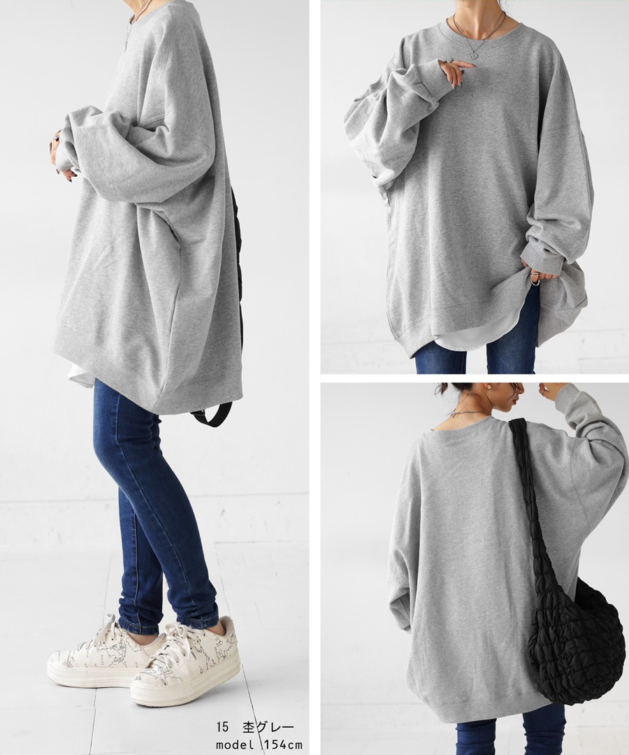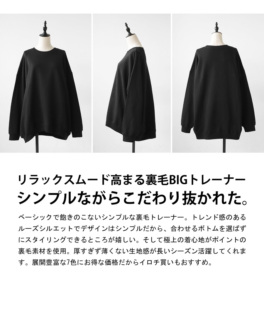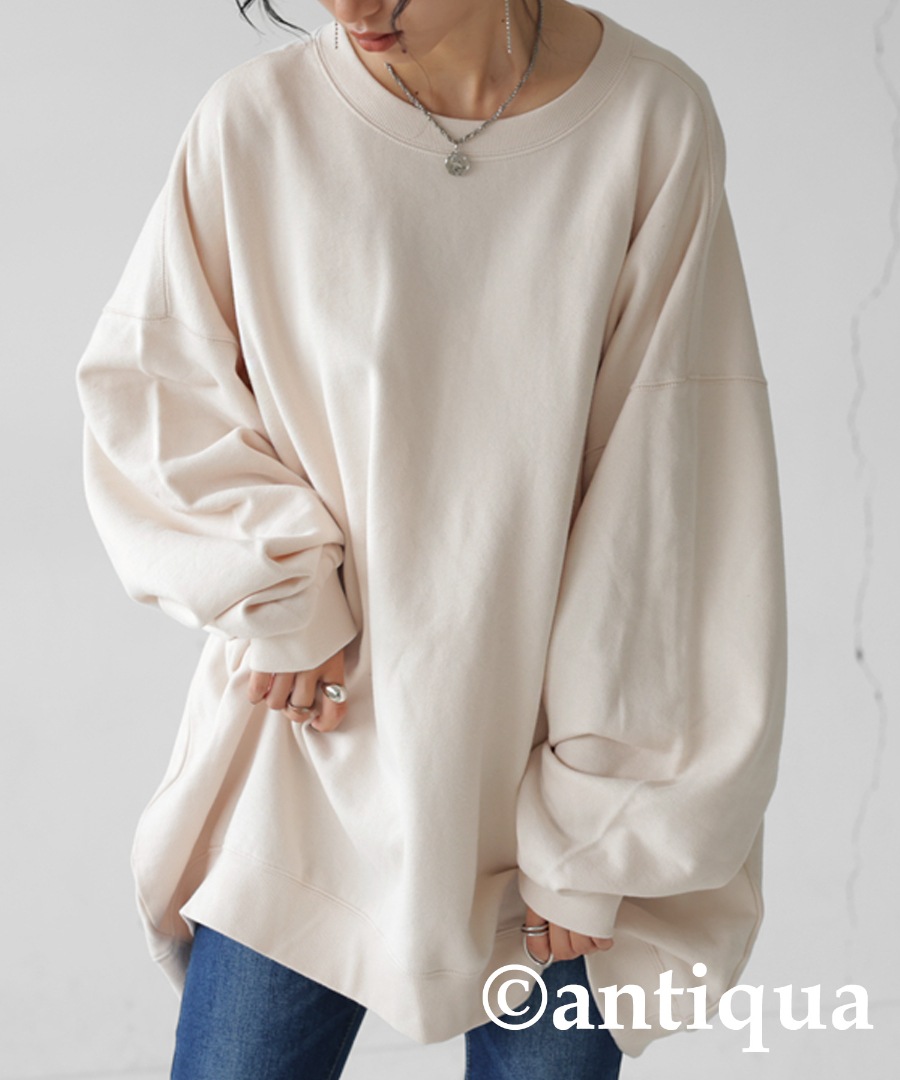 【検索ワード】裏毛プルオーバー トレーナー レディース トップス 綿100 スウェット 無地 シンプル 長袖 クルーネック 丸首 リブ 前後差 ドロップショルダー ゆったり ラフ 裏毛 裏毛トップス ボリューム袖 きれいめ 綿 コットン BIGトレーナー 着痩せ 細見え 体型カバー オーバーサイズ 大きめ 大きいサイズ カラバリ豊富 ユニセックス antiqua treecafe アンティカ ツリーカフェ 大人 おしゃれ 10代 20代 30代 40代 50代 60代 春 秋 冬 お洒落 カジュアル かわいい かっこいい あんてぃか