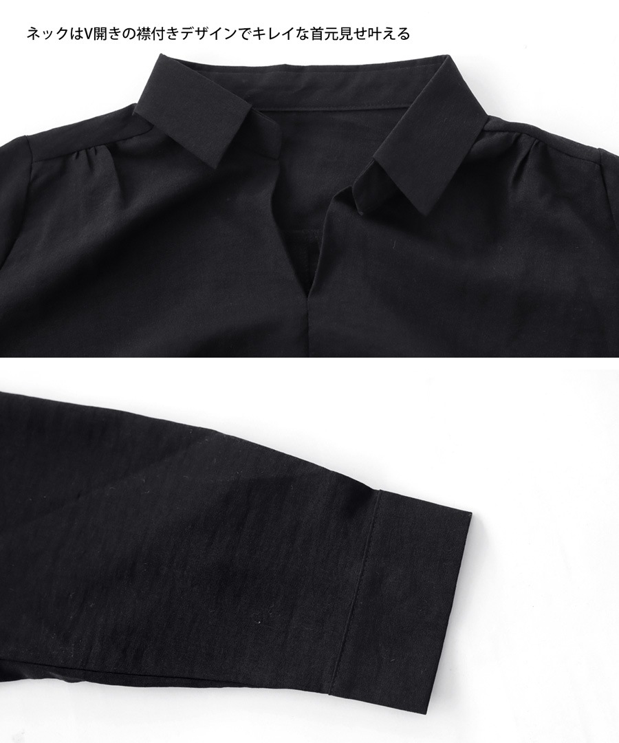 ・ネックはV開きの襟付きデザインでキレイな首元。