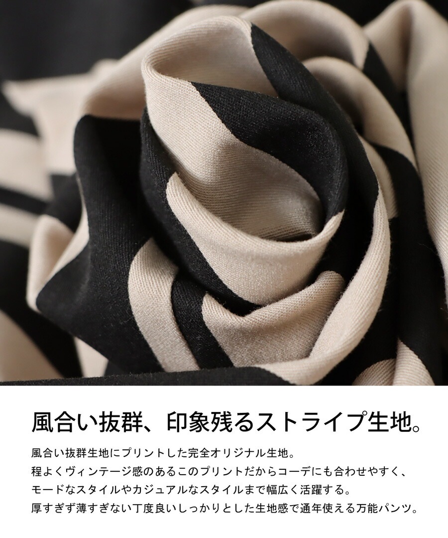 ・脚長効果のあるストライプ生地。