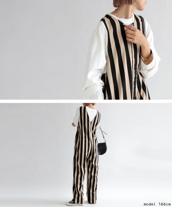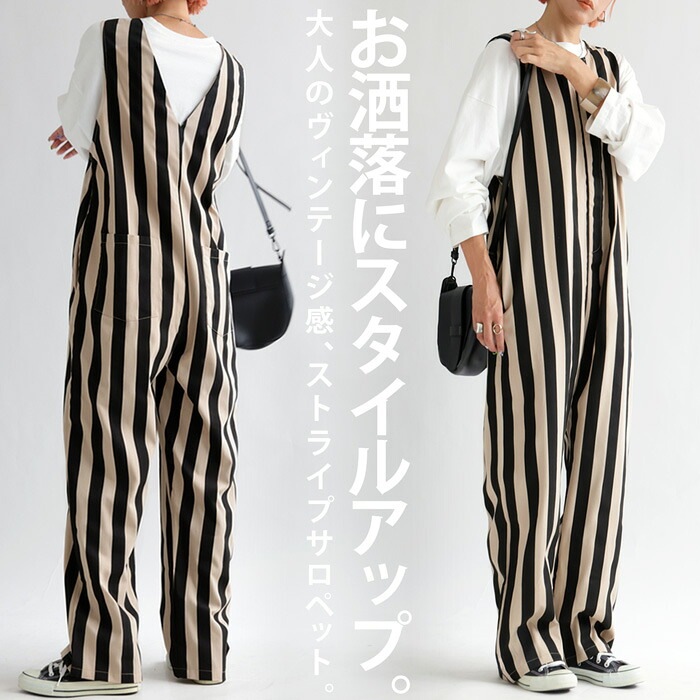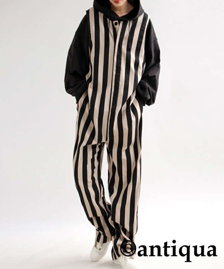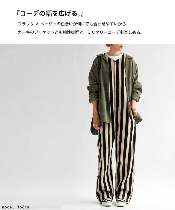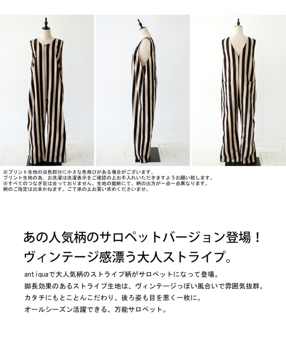 【検索ワード】サロペット レディース ボトムス ノースリーブ ロング ストライプ柄 ゆったり 柄 レイヤード 重ね着 きれいめ シンプル テーパード 長ズボン パンツ ヴィンテージ オールインワン オーバーオール つなぎ コンビネゾン サロペ ジャンプスーツ フロントファスナー バックデザイン V開き Uネック バックポケット 着痩せ 細見え 体型カバー ポケット付き 裾上げテープ付き 親子 お揃い リンクコーデ 親子コーデ ファミリー おそろ オソロ antiqua アンティカ 大人 おしゃれ 10代 20代 30代 40代 50代 60代 春 夏 秋 冬 オールシーズン お洒落 カジュアル かわいい かっこいい あんてぃか
