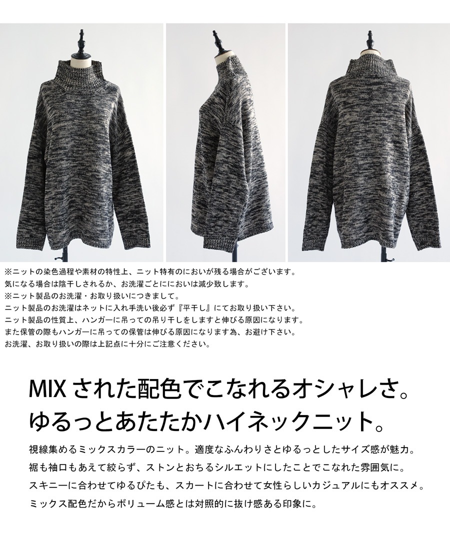 【検索ワード】ミックスカラー ハイネックニット ニット レディース 長袖 トップス メランジ 配色 配色ニット ハイネック セーター プルオーバー ゆったり ニュアンス柄 ニュアンスカラー ミックス リブ シンプル すっきり きれいめ 高級感 メランジニット ふんわり 防寒 あったか 暖かい オーバーサイズ 大きめ 大きいサイズ ユニセックス antiqua treecafe アンティカ ツリーカフェ 大人 おしゃれ 10代 20代 30代 40代 50代 60代 秋 冬 お洒落 カジュアル かわいい かっこいい あんてぃか