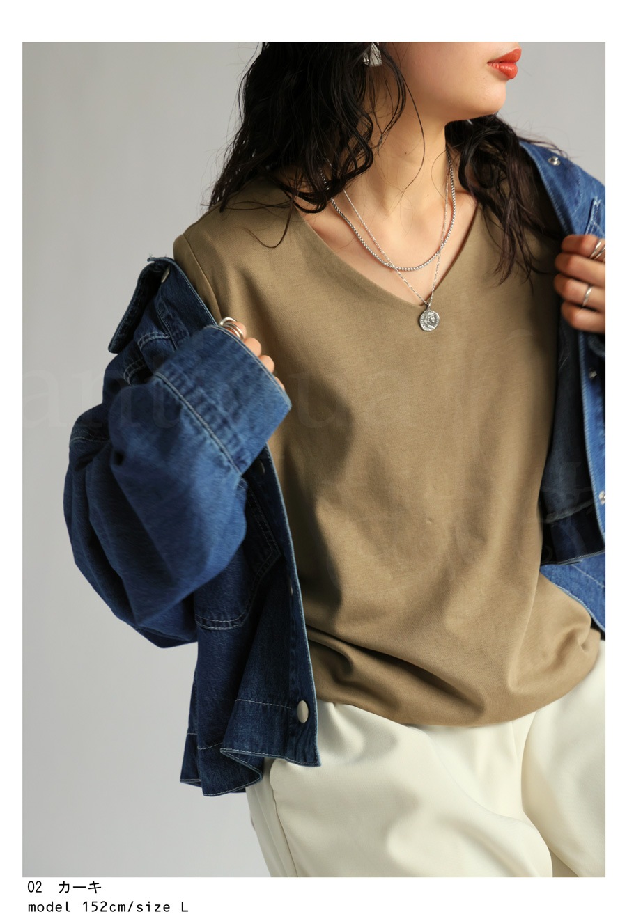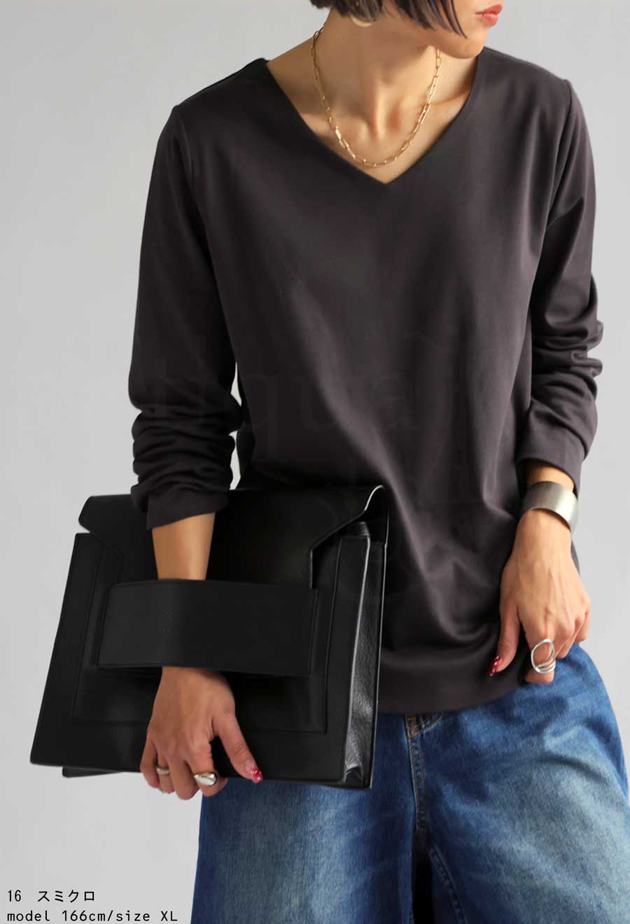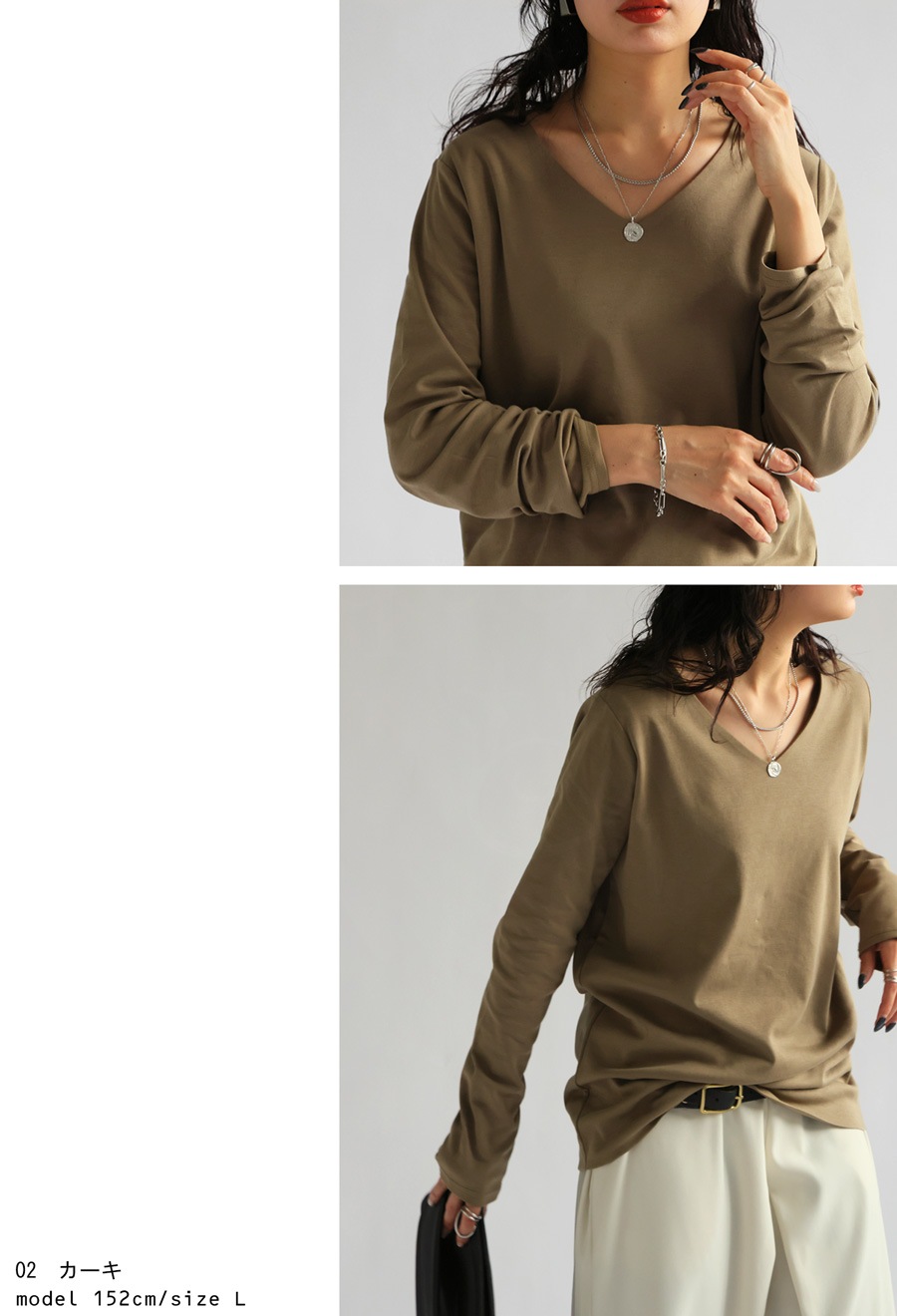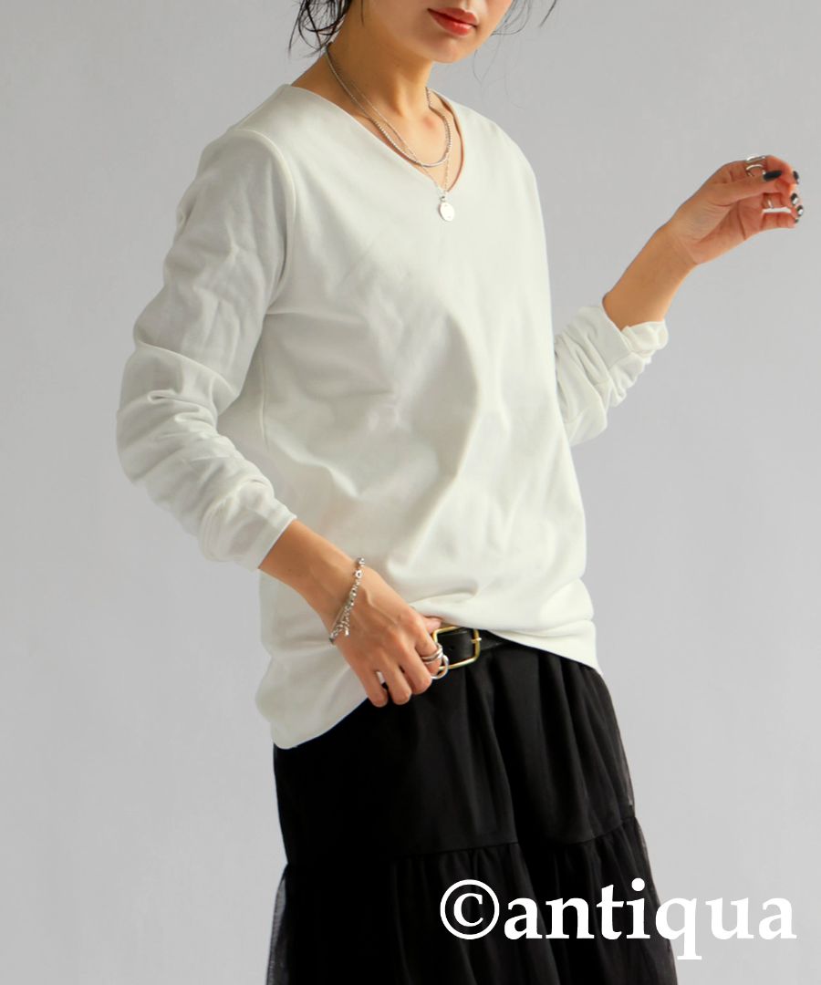【検索ワード】VネックロンT レディース トップス 長袖 綿100 無地 シンプル Vネック コンパクトスムース カットソー Tシャツ プルオーバー 透けない レイヤード インナー レイヤードインナー 重ね着 綿 コットン コットンロンt オーバーサイズ 大きめ 大きいサイズ サイズ展開 M L XL antiqua アンティカ 大人 おしゃれ 10代 20代 30代 40代 50代 60代 春 秋 冬 お洒落 カジュアル かわいい かっこいい あんてぃか