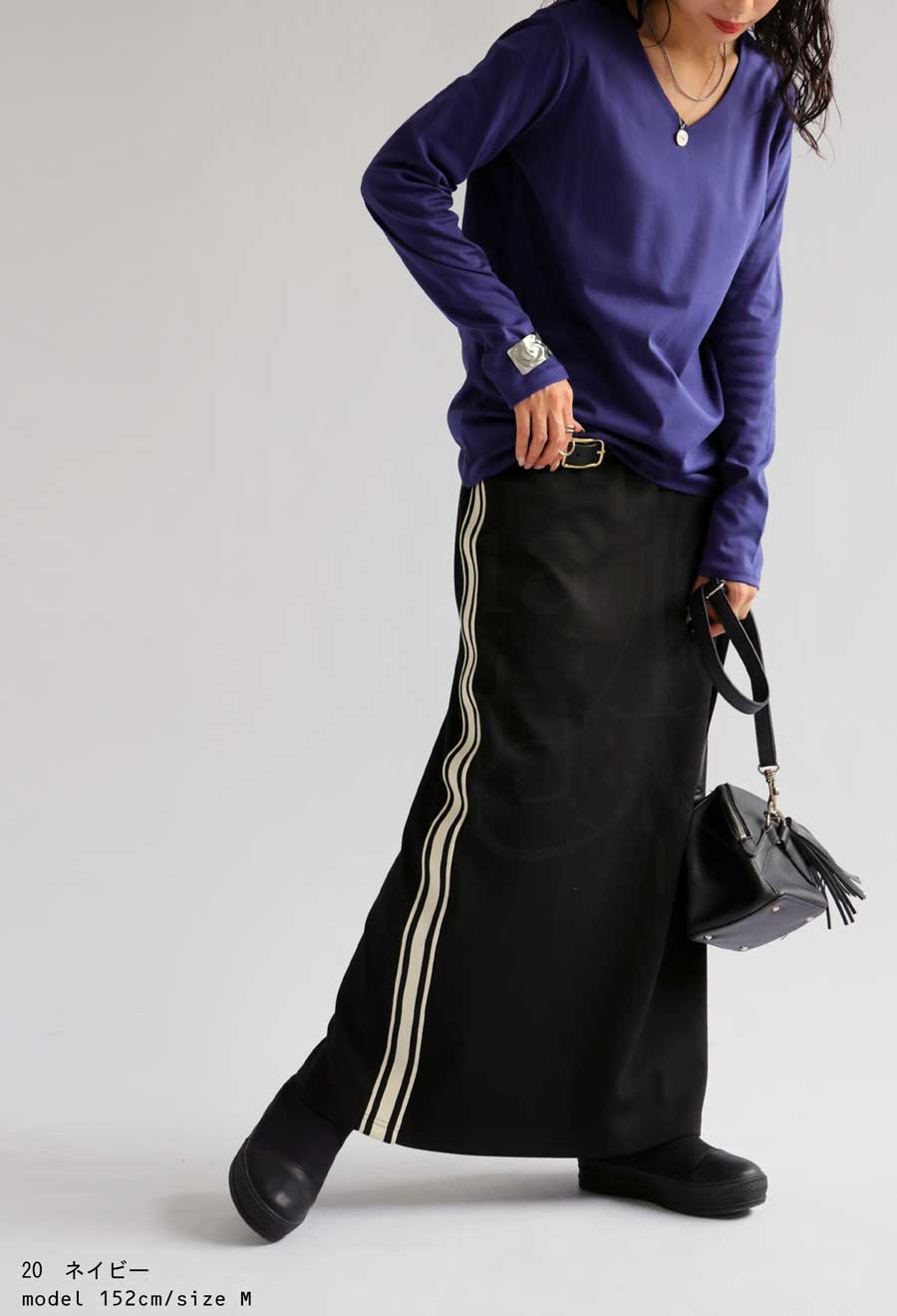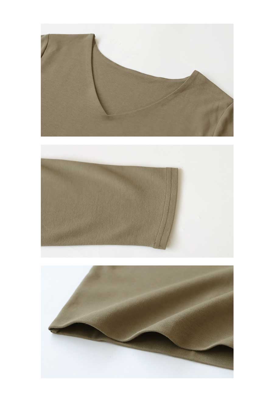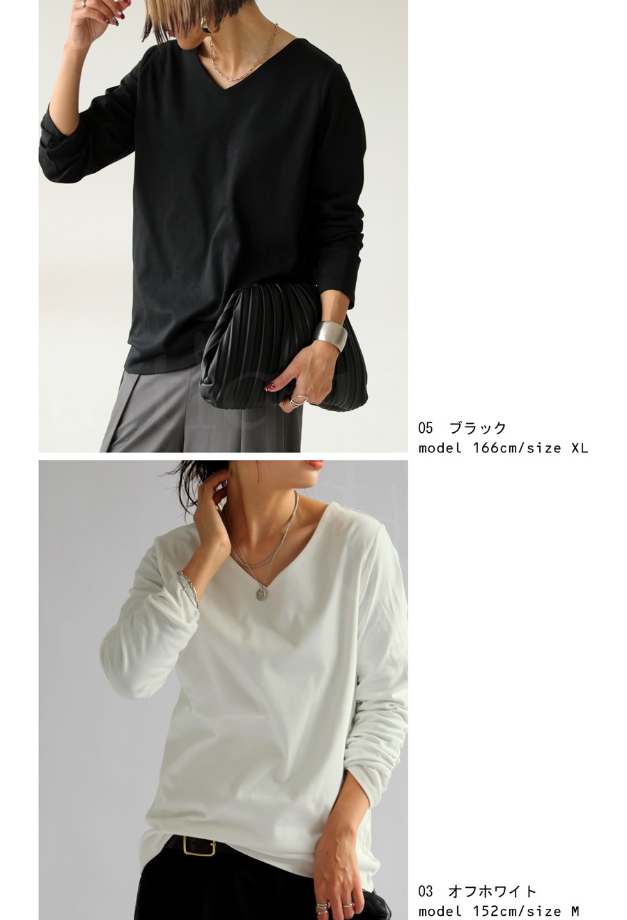 ・顔回りをすっきりと魅せて着痩せ効果抜群のVネック。