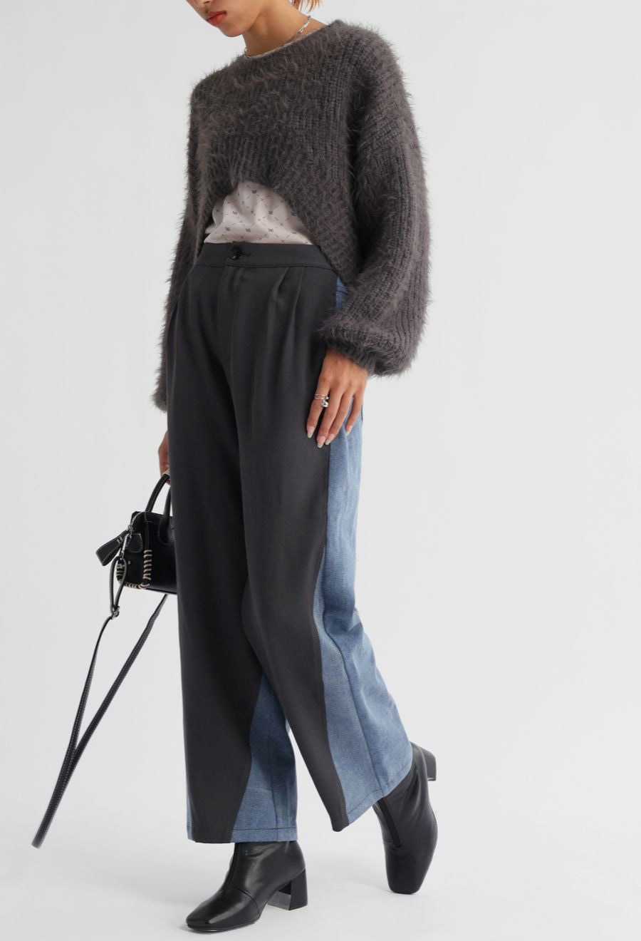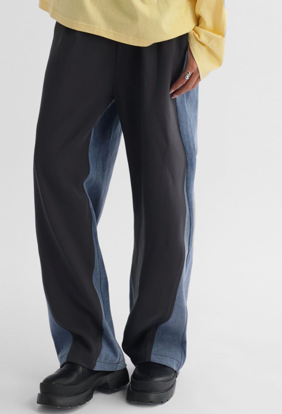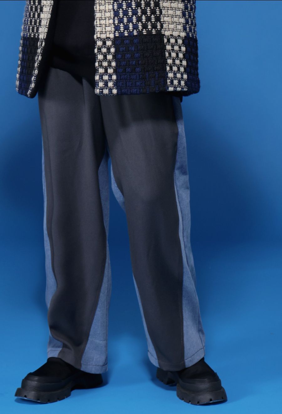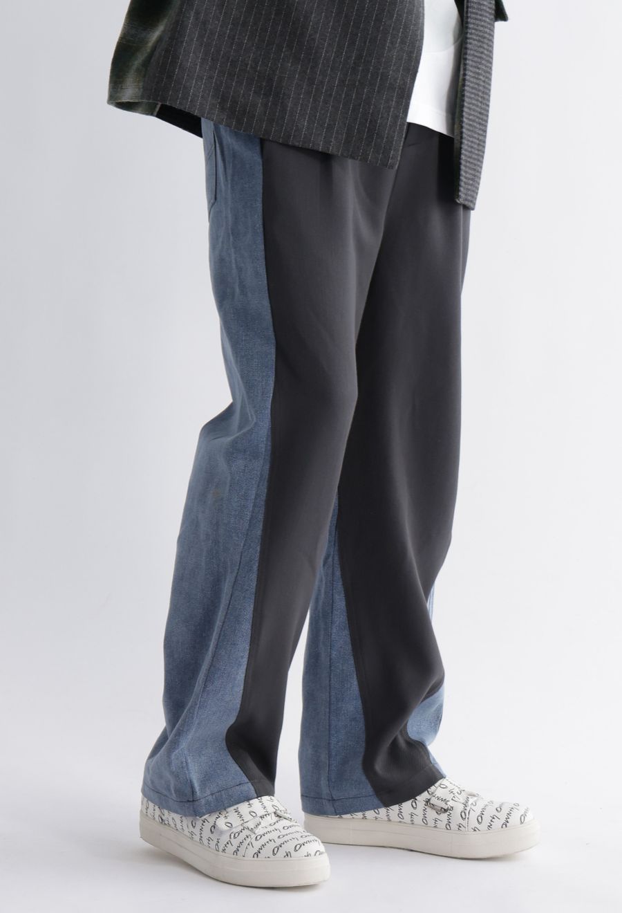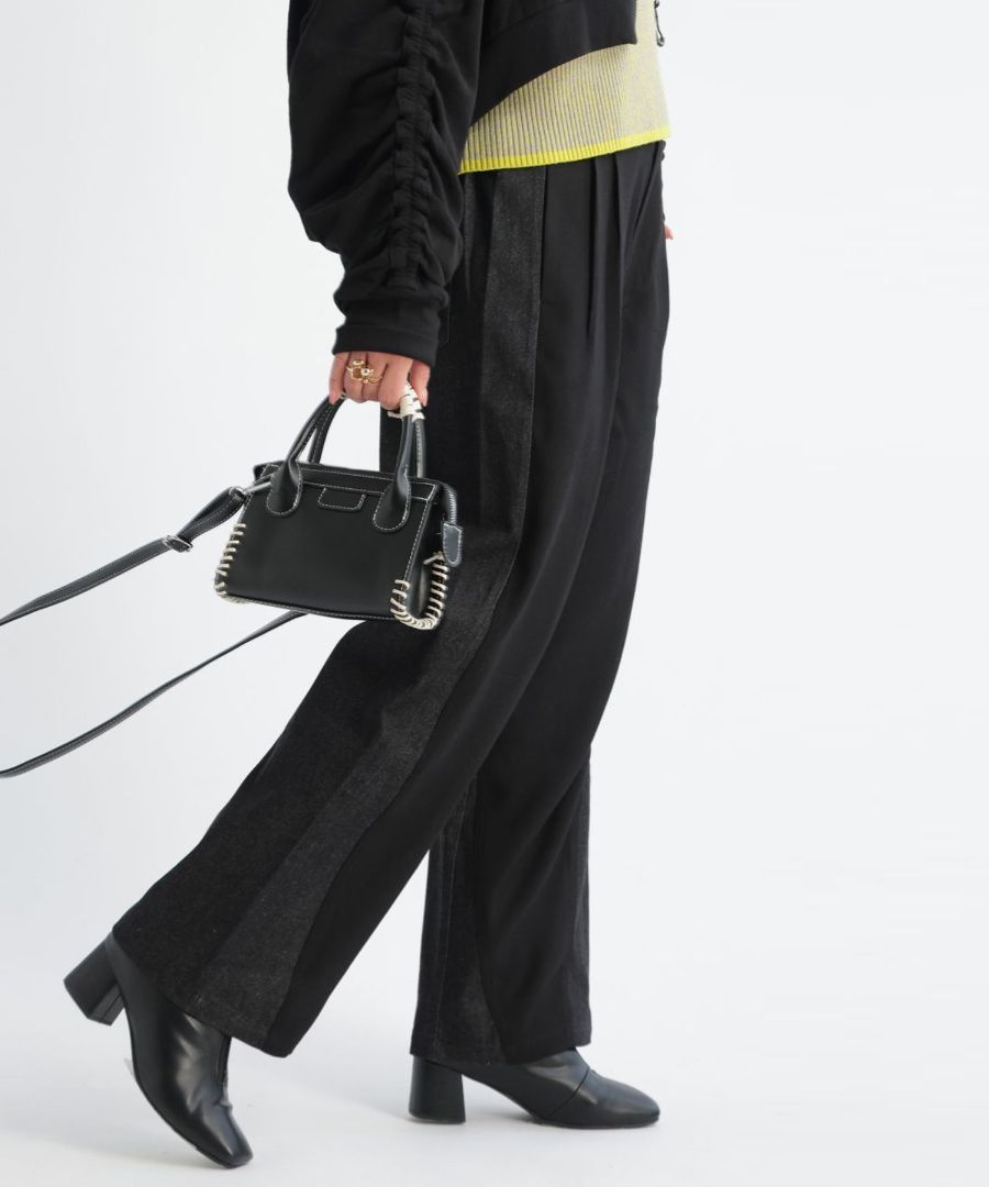 デニムドッキングが映える前後で印象の変わるテーパードパンツです。