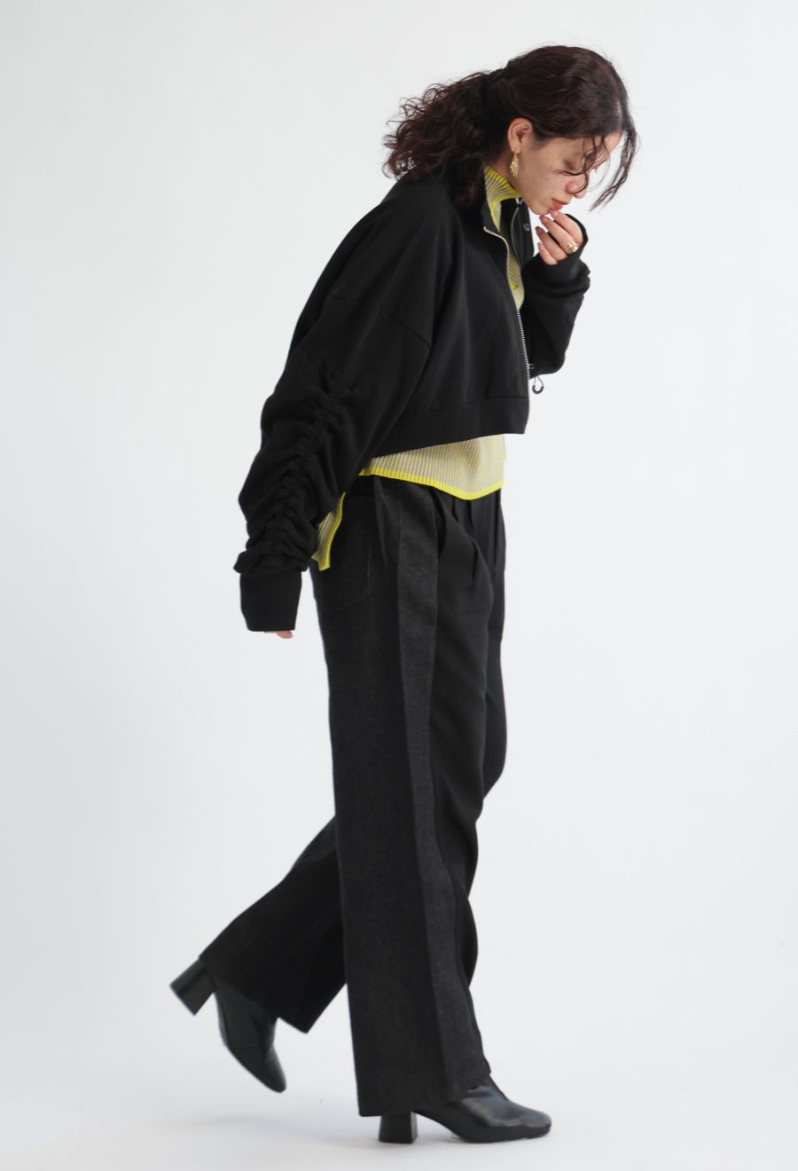 形状はワイドシルエットで、ゆったりしつつも上品な印象に仕上げました。