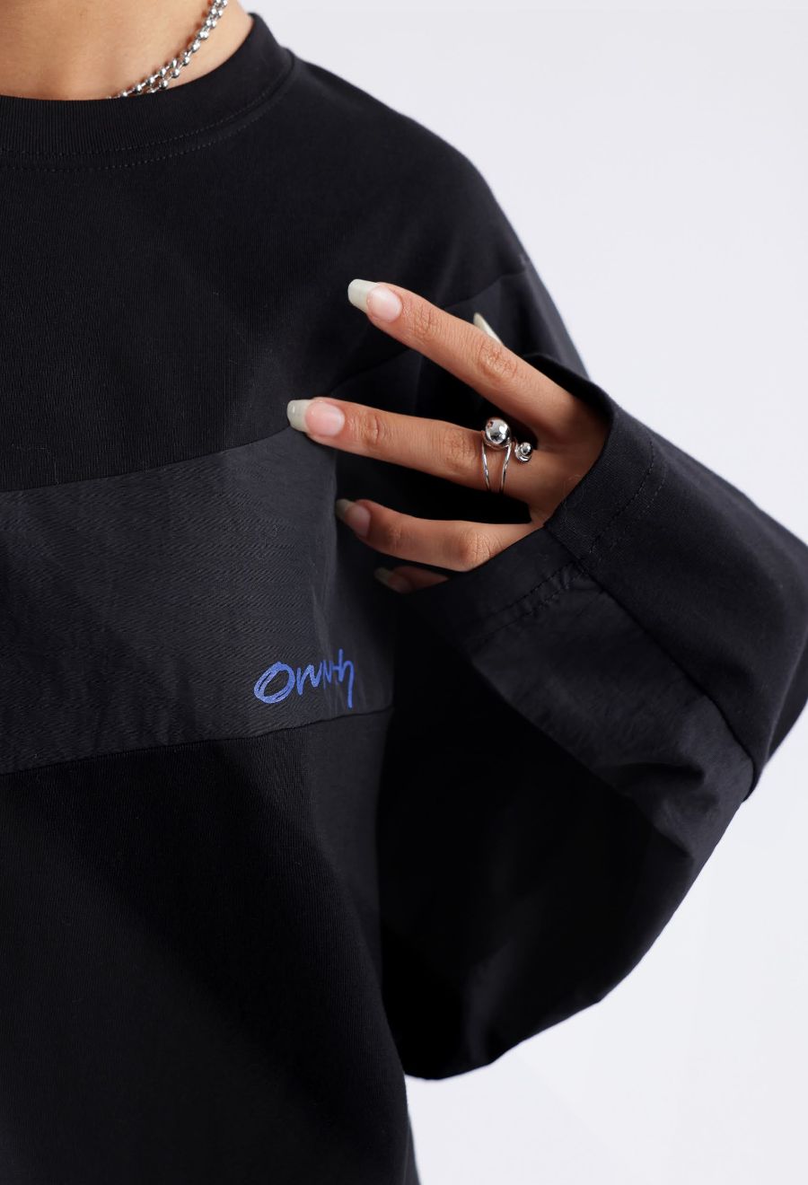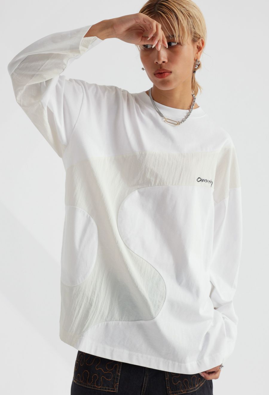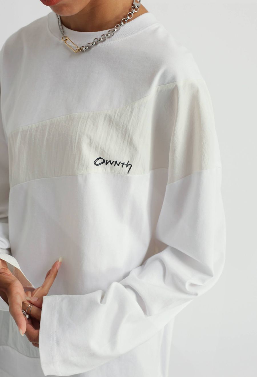 胸元にはOWNthのロゴをさりげなく配置し、デザインの流れに溶け込むよう工夫されています。