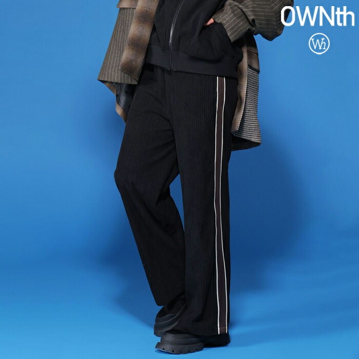 クラシカルな配色ラインがアクセントになった、ワイドシルエットのトラックパンツです。