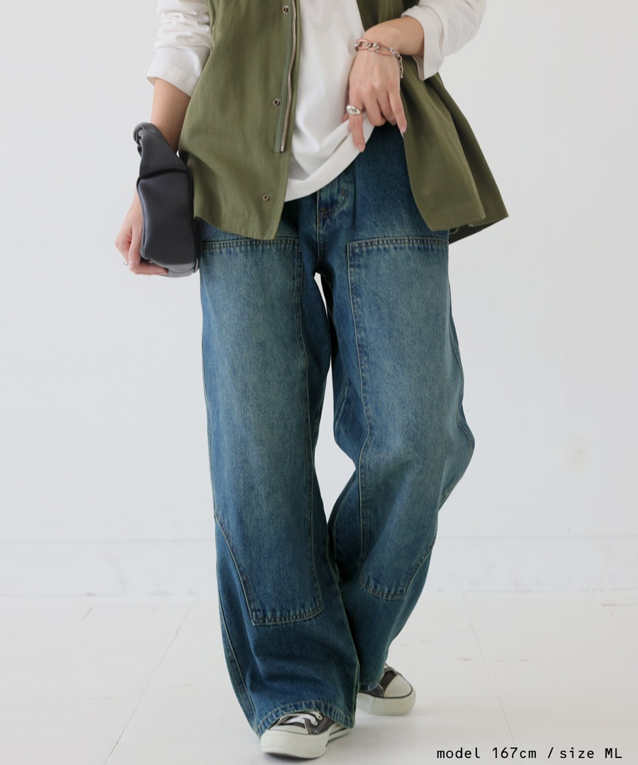 【検索ワード】ダブルニーデニム パンツ レディース ボトムス ロング デニム ダブルニ― ストレート ゆったり ジーンズ ジーパン 長ズボン 無地 シンプル ヴィンテージ感 古着風 ストレートデニム デニムパンツ 前フラット 後ろゴム ポケット付き サイズ展開 ML LXL ユニセックス antiqua treecafe アンティカ ツリーカフェ 大人 おしゃれ 10代 20代 30代 40代 50代 60代 春 夏 秋 冬 オールシーズン お洒落 カジュアル かわいい かっこいい あんてぃか