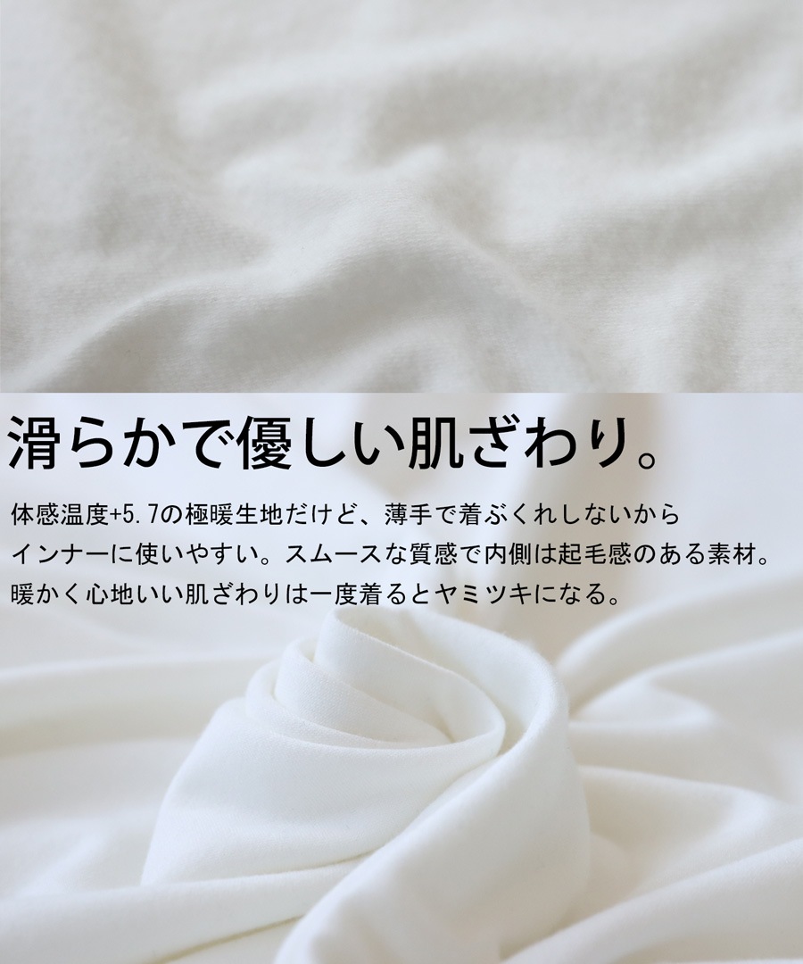 裏起毛の心地いい風合いと発熱素材で寒い時期には何枚でも持っていたい優秀アイテムです。