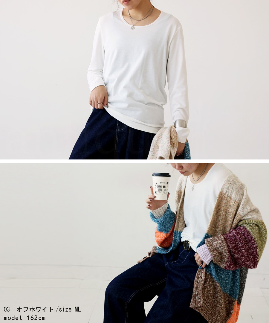 ・薄手でシンプルなカタチだから一枚でもインナーとして着ても◎