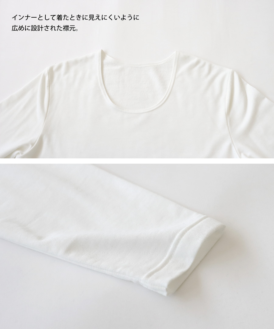 ・インナーとして着た時に見えにくいよう広めに設計されたネックライン。