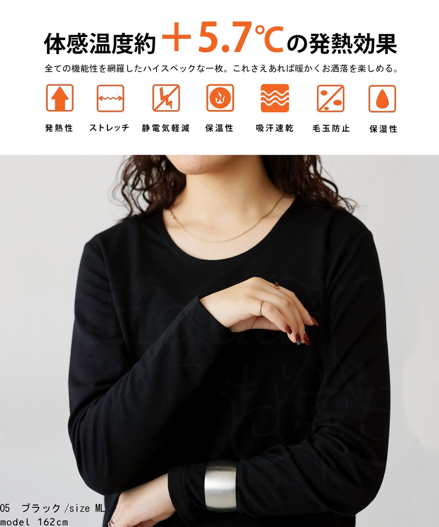 極暖ロンT +5.7℃ ロンT レディース トップス 長袖・再再販。(100)メール便可