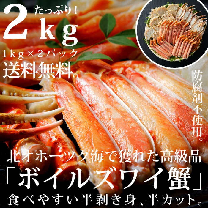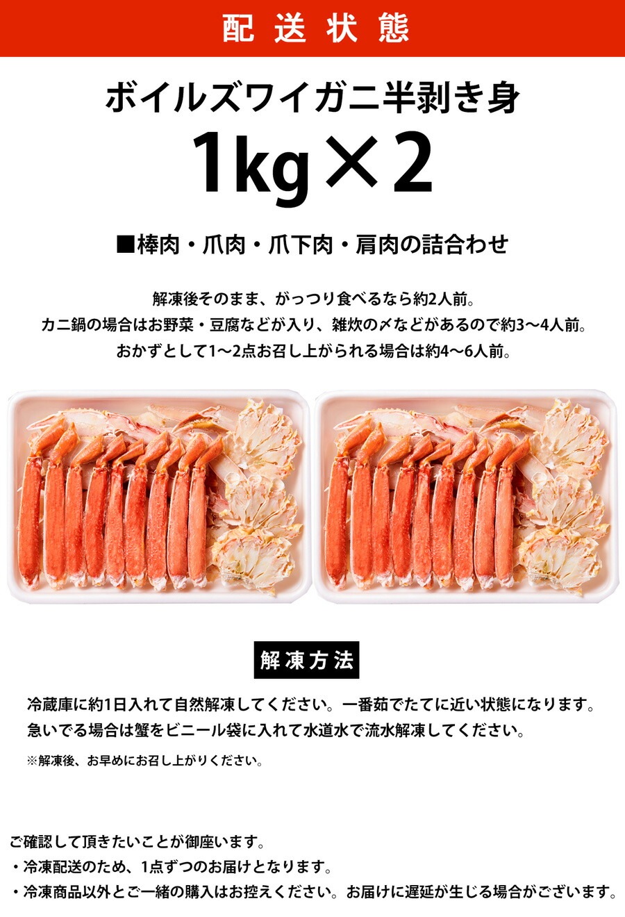 【検索ワード】ボイルズワイガニ 1kg×2パック 2kg 大型生冷 ズワイガニ 半むき身 ずわいがに ずわい蟹 カニ かに 蟹 無添加 ボイル グルメ 食品 半剥き身 半カット 高鮮度 高品質 マルシェデ北海道 北海道 北オホーツク 鍋 カニしゃぶ 焼き蟹 かに身 カニ身 むき身 お歳暮 お取り寄せ プレゼント 冬グルメ セクション ギフト 贈り物 プレゼント 内祝 お返し お祝 誕生日 お中元 antiqua アンティカ あんてぃか
