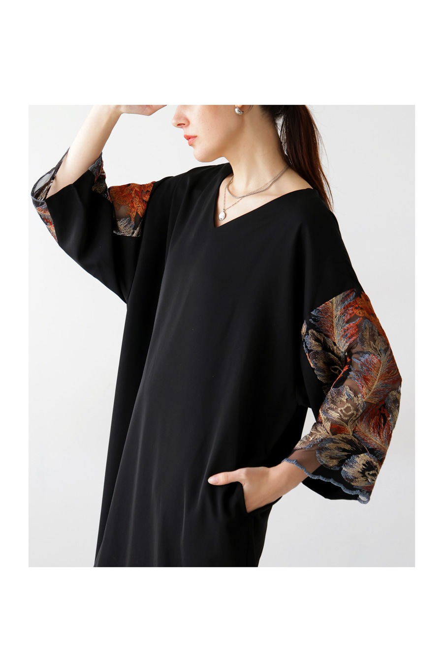 【検索ワード】袖チュール刺繍 ワンピース レディース ロング 長袖 ジャガード風 刺繍 チュール レース 透け シースルー 切替え Vネック きれいめ 上品 高級感 ゆったり ロングワンピ ワンピ 着痩せ 体型カバー 大きめ 大きいサイズ サイズ展開 Regular Plus フォーマル 結婚式 二次会 パーティー オケージョン 入卒 入園式 卒園式 入学式 卒業式 セレモニー 発表会 謝恩会 晴れの日 ハレの日 antiqua アンティカ 大人 おしゃれ 10代 20代 30代 40代 50代 60代 春 夏 お洒落 カジュアル かわいい かっこいい あんてぃか