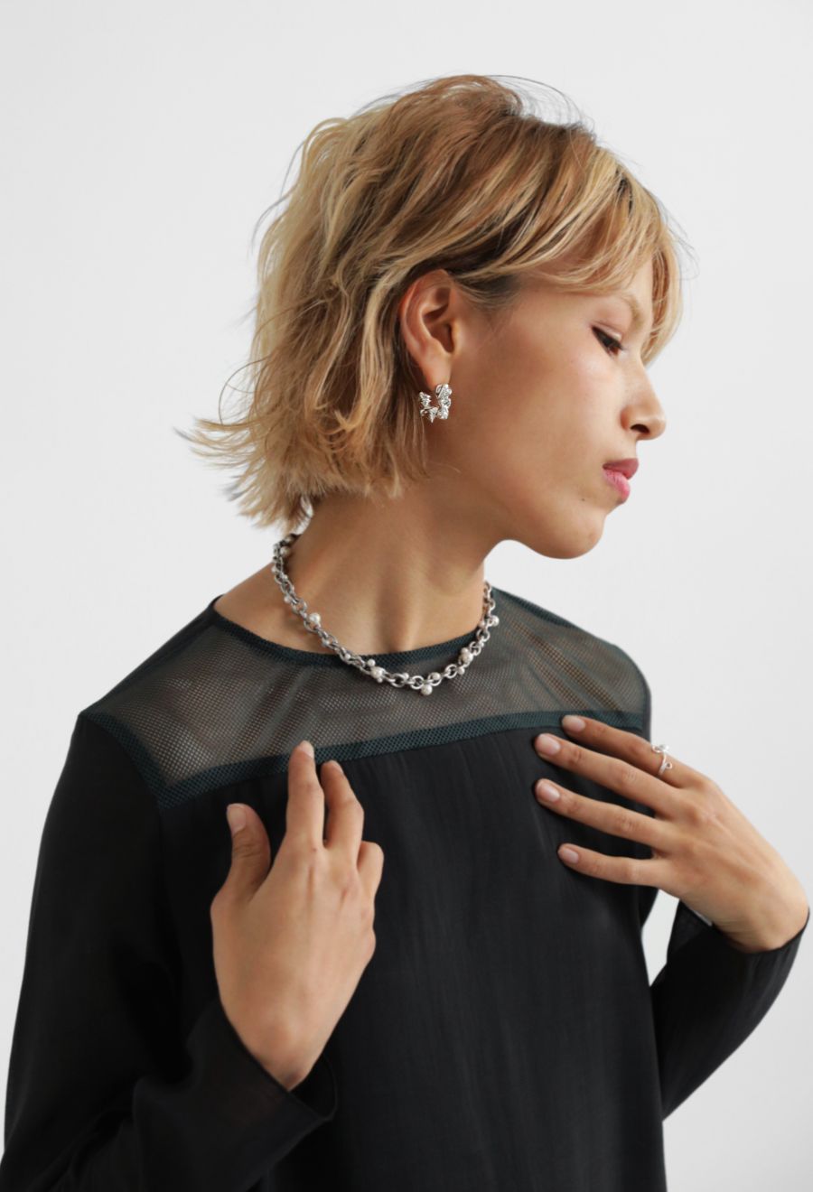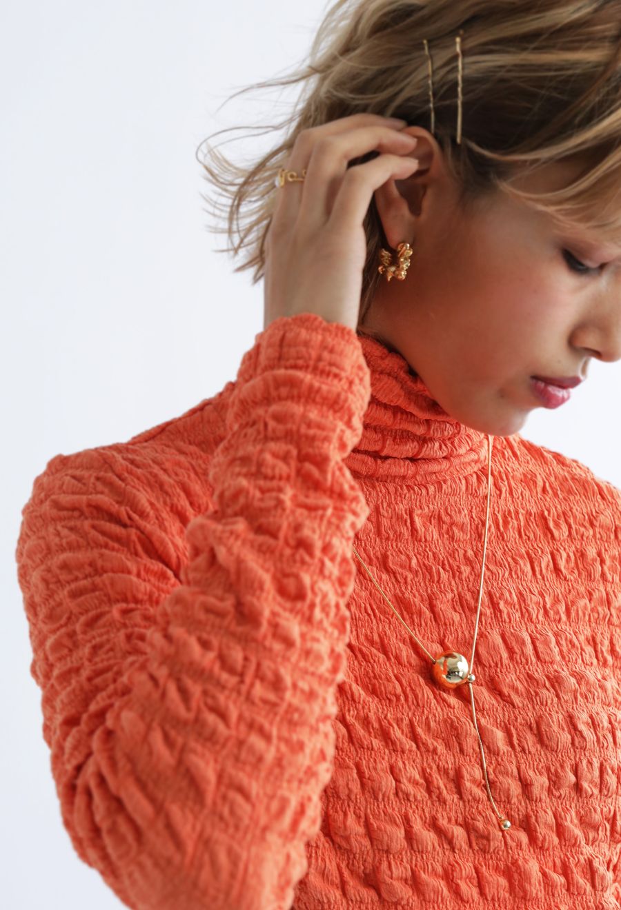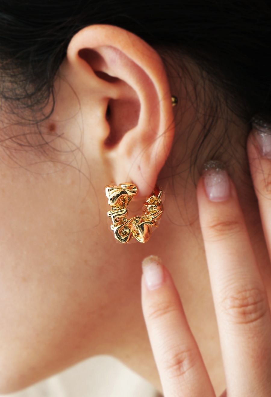 キャッチ式で着脱が簡単な仕様になっており、耳元に程よい存在感をプラスします。