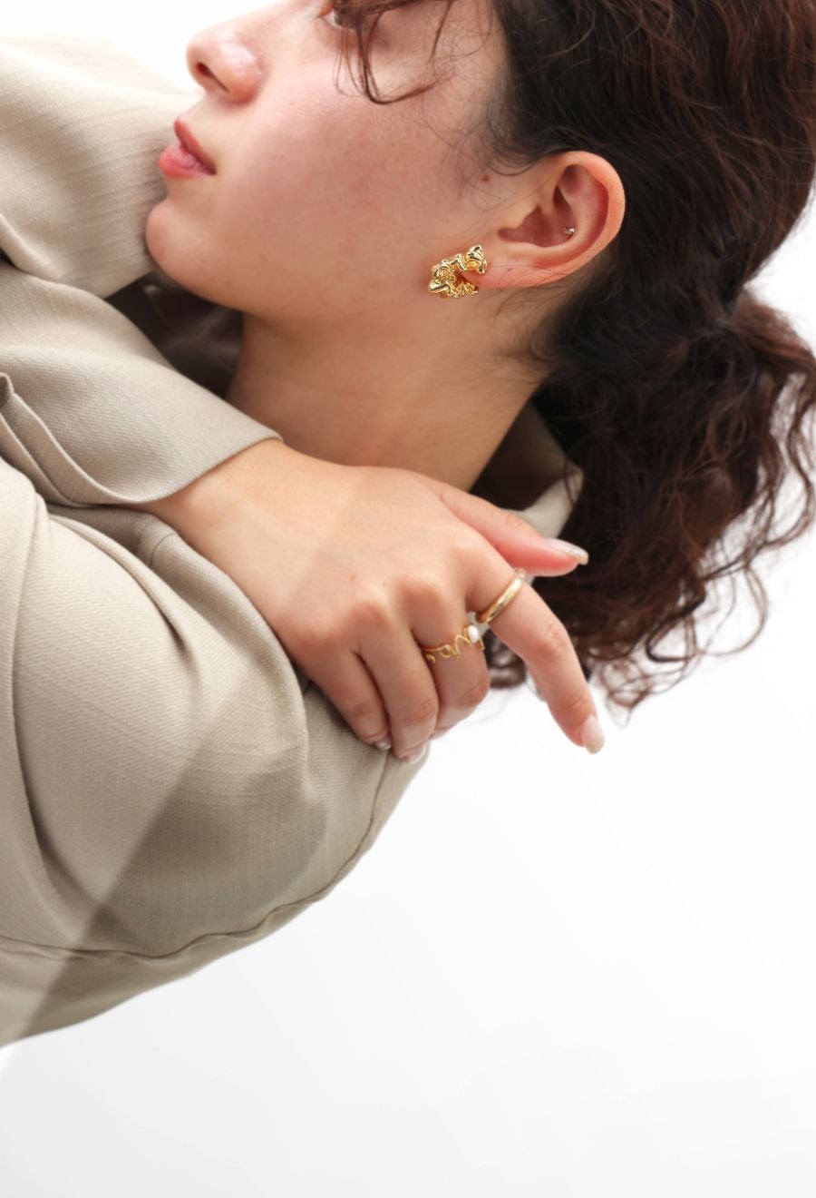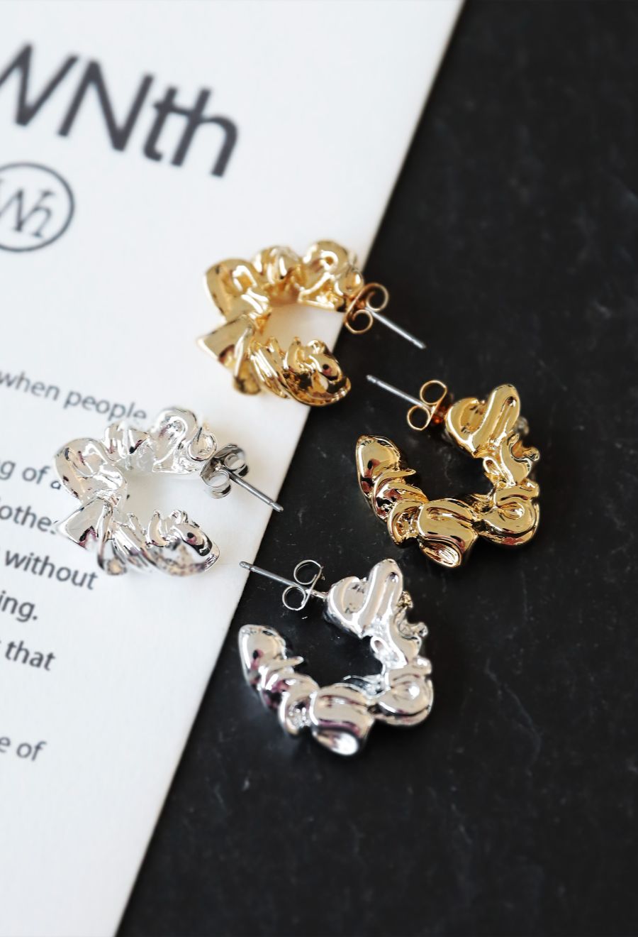 躍動感のある立体的なフォルムが目を惹くデザインピアス。