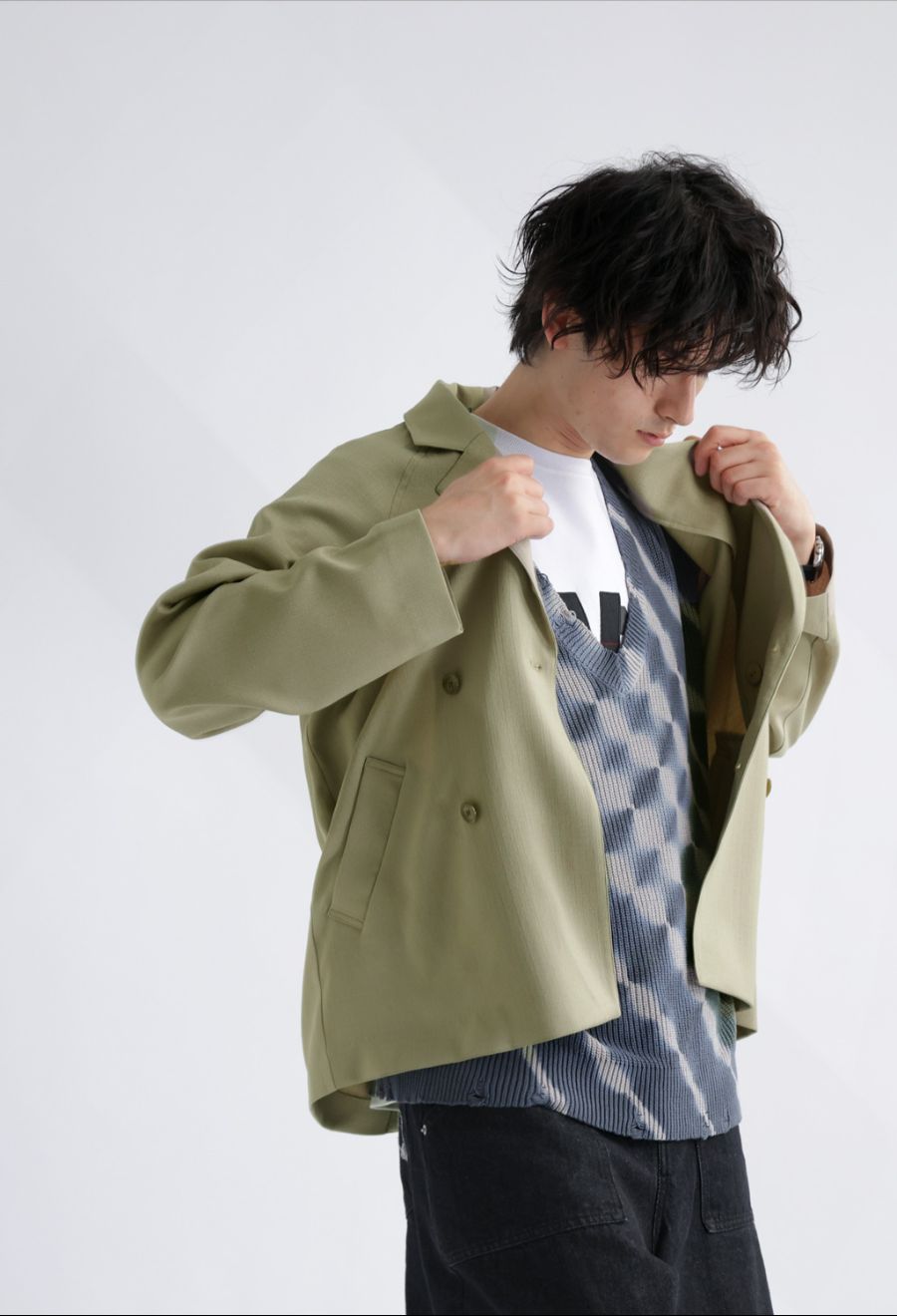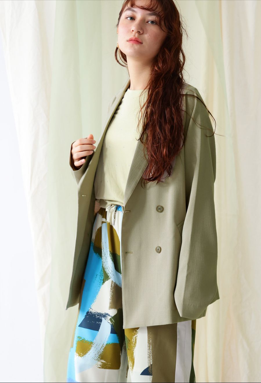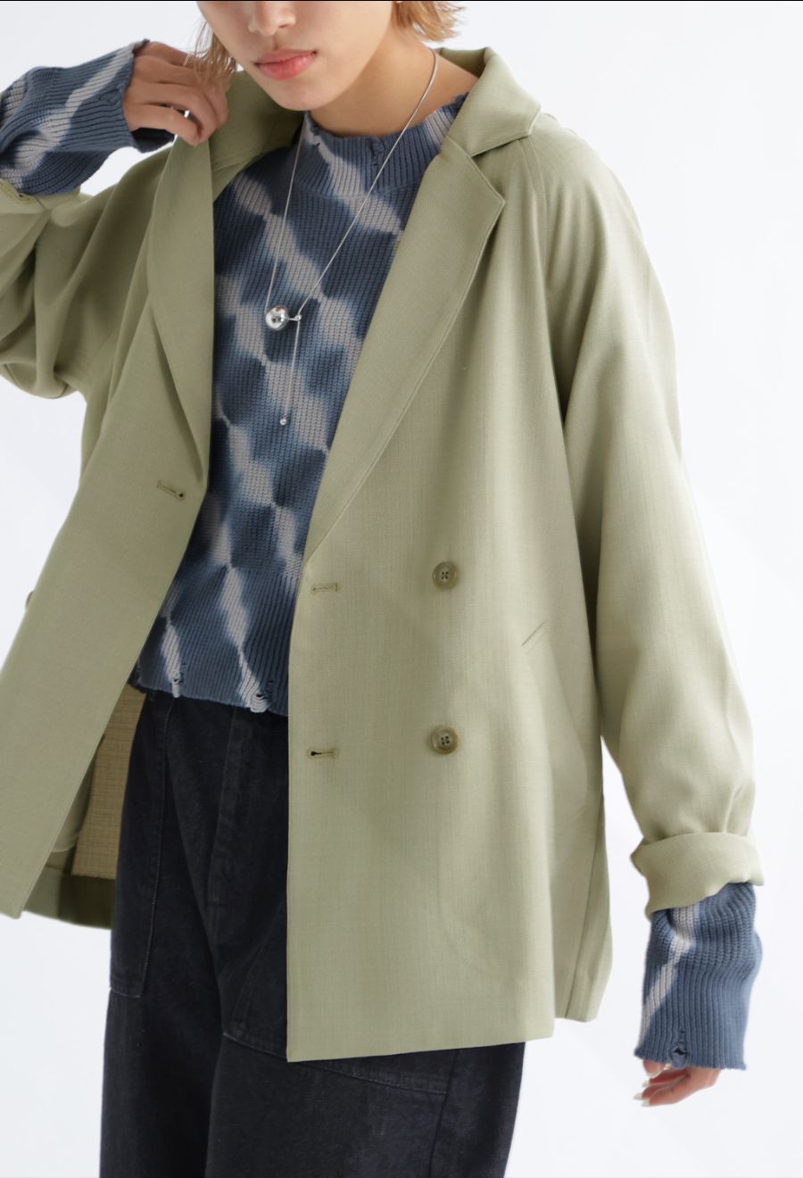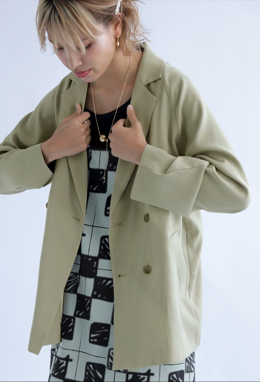 テーラードカラーとダブルブレストが上品な印象を与える、春夏向けのジャケットです。