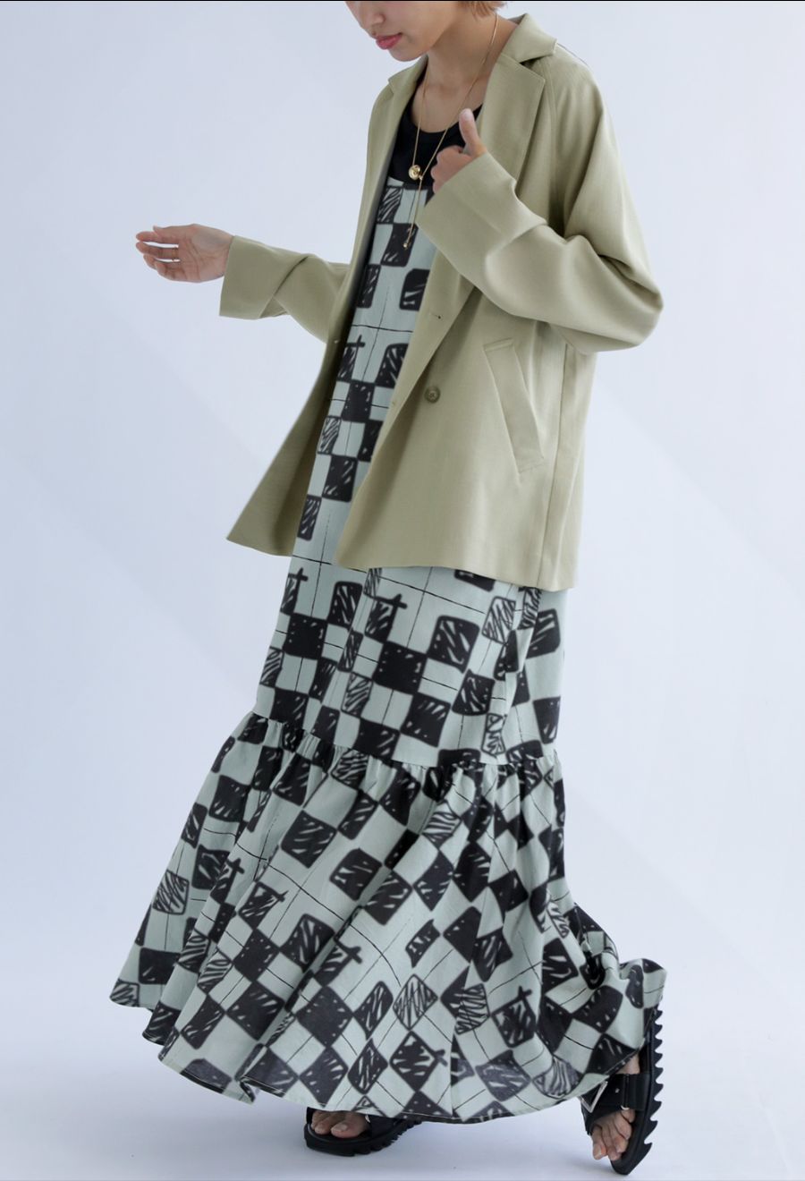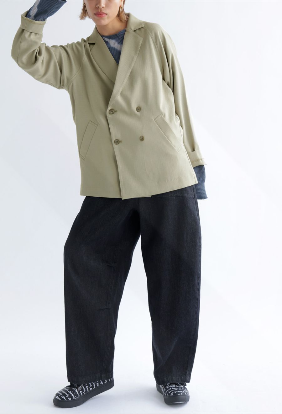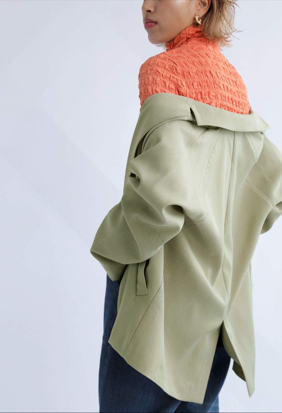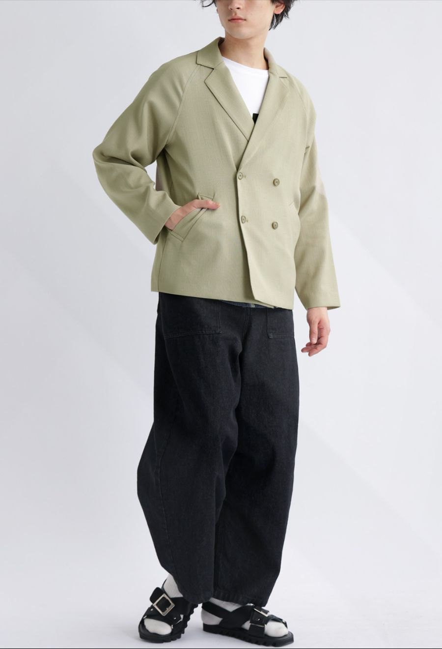 テーラードカラーとダブルブレストが上品な印象を与える、春夏向けのジャケットです。