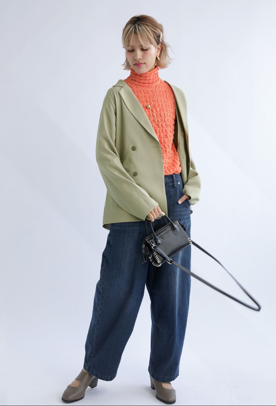 程よい丈感で、羽織るだけでこなれた大人のスタイルに仕上がります。