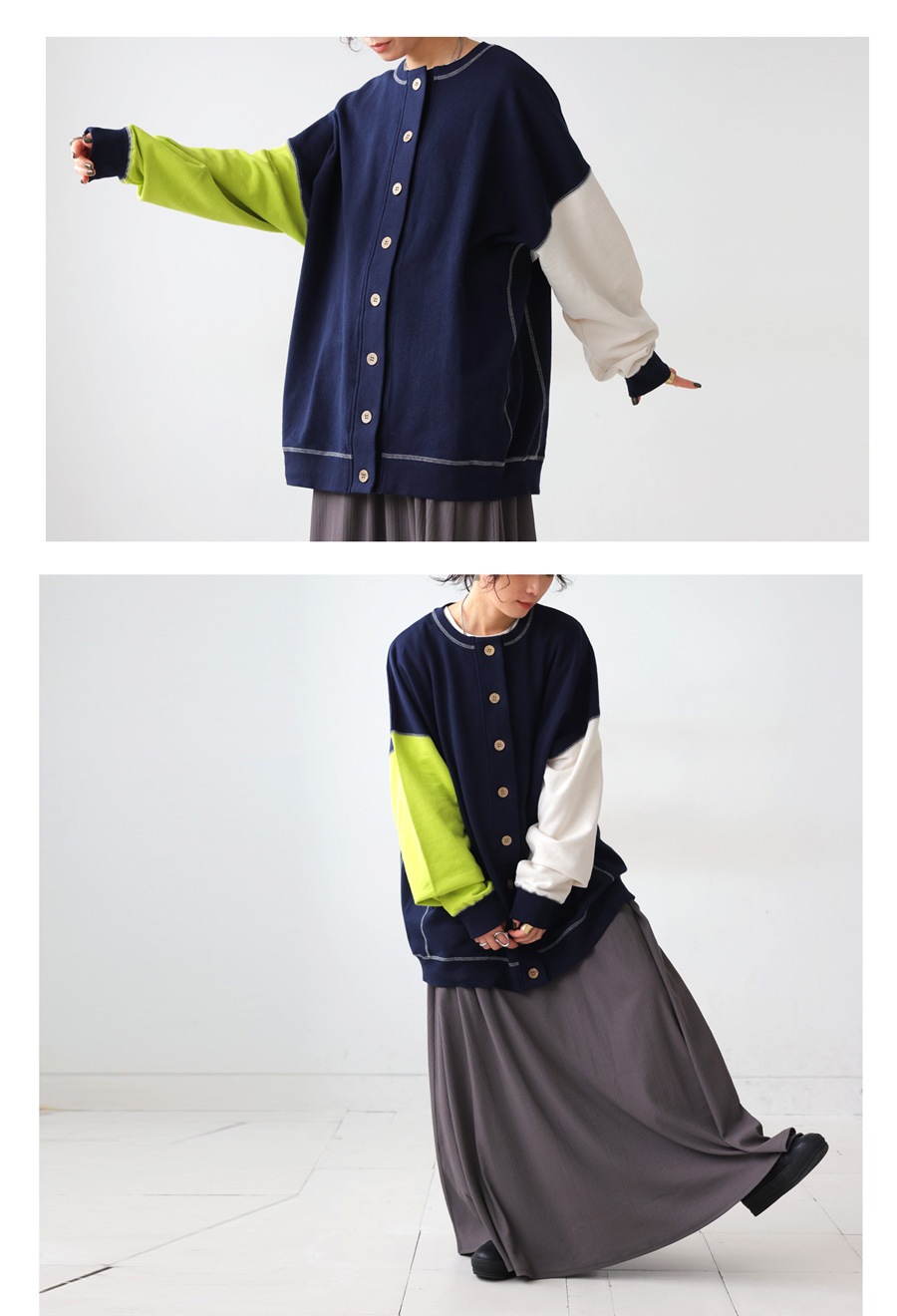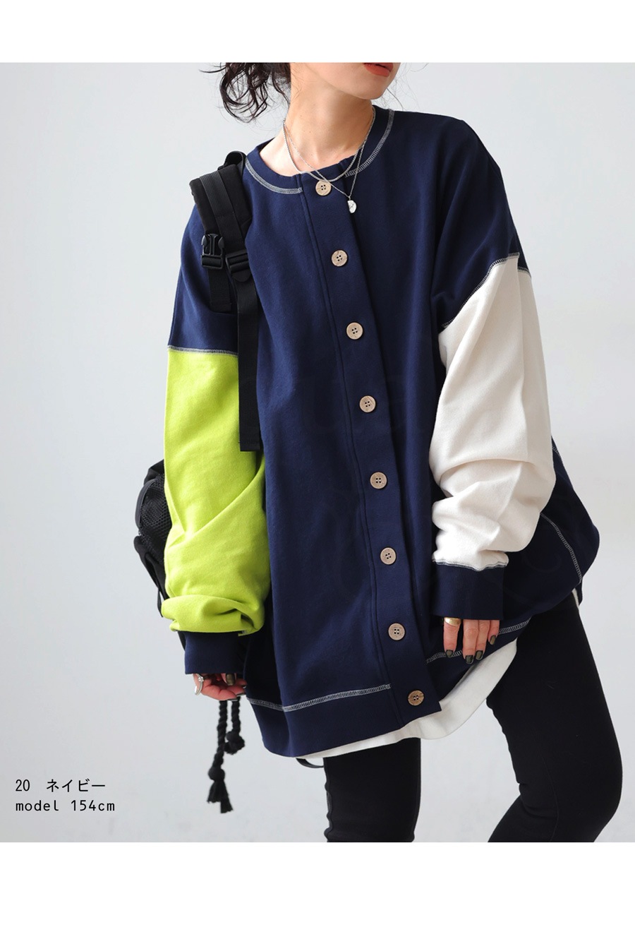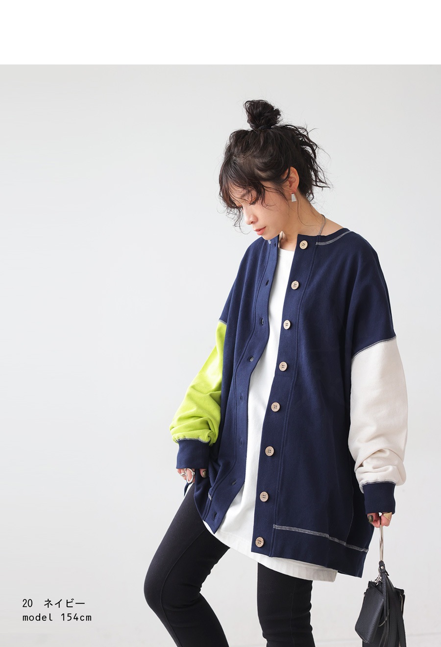 【検索ワード】カーディガン レディース トップス 長袖 配色 綿100 裏毛 羽織り 丸首 クルーネック カーデ 前開き ゆったり 綿 コットン 裏毛トップス 裏毛カーディガン 着痩せ 体型カバー 大きめ 大きいサイズ ユニセックス antiqua treecafe アンティカ ツリーカフェ 大人 おしゃれ 10代 20代 30代 40代 50代 60代 春 秋 冬 お洒落 カジュアル かわいい かっこいい あんてぃか