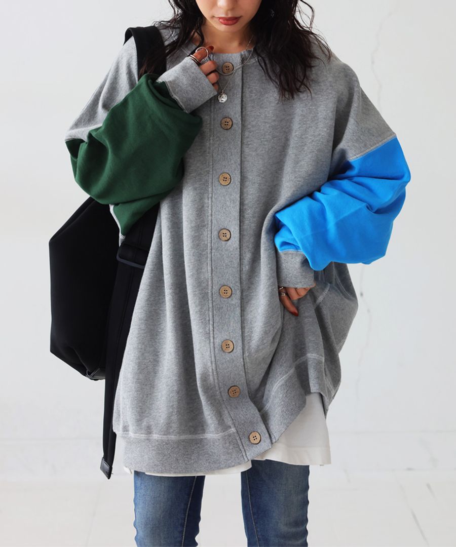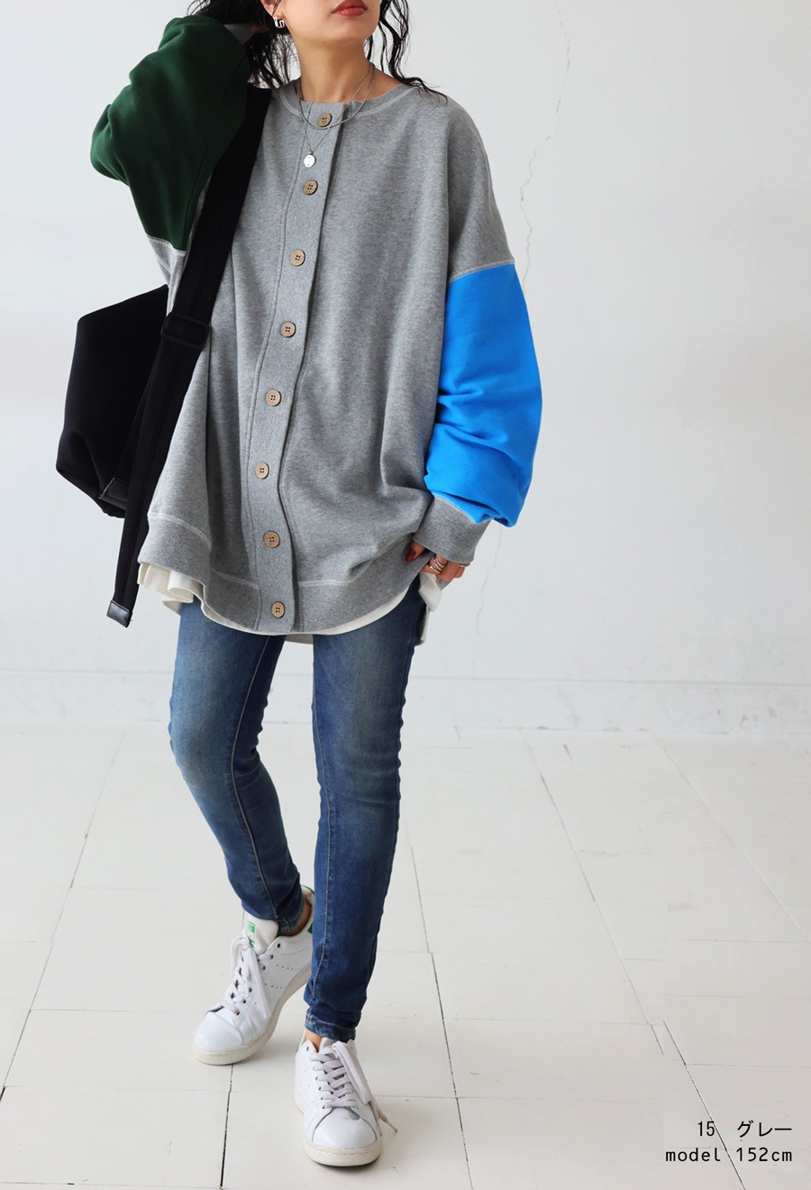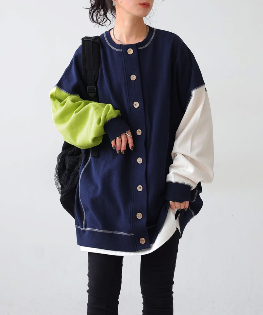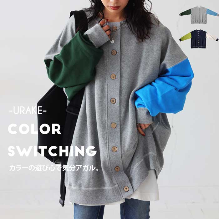 【検索ワード】カーディガン レディース トップス 長袖 配色 綿100 裏毛 羽織り 丸首 クルーネック カーデ 前開き ゆったり 綿 コットン 裏毛トップス 裏毛カーディガン 着痩せ 体型カバー 大きめ 大きいサイズ ユニセックス antiqua treecafe アンティカ ツリーカフェ 大人 おしゃれ 10代 20代 30代 40代 50代 60代 春 秋 冬 お洒落 カジュアル かわいい かっこいい あんてぃか